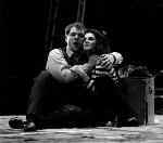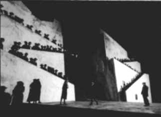 Giancarlo del Monaco compared 'Santuzza' with the Greek legend about 'Medea', who left a bunch of dead bodies behind her. Therefore he excluded totally the folkloristic-cheerful elements and the threatening of 'Santuzza' by the world of men becomes obviously from the first moment on. In this production the fight between 'Alfio' and 'Turiddu' does not take place behind the scenery but in front of 'Santuzza' and 'Lucia', which makes it even more affecting and present for the audience. Further performances: April 5., 8., 10., 17., 23., 30, May 3, 15, 1999. Copyright for Text & Layout © 1998 - 2001 Birgit Popp |