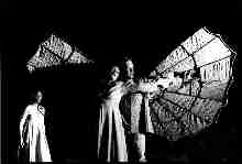 Die auffallendste Länge dieser Oper reizt dabei sogar zum Lchen, distanziert man sich einmal etwas vom Geschehen auf der Bühne: angeblich blutüberströmt und sterbend wirft sich Werther noch einmal Lotte zum finalen Duett zu Füßen, seine Stimme versiegt, er bricht zusammen - nur um dann wieder aufzustehen, seine Ikarus-Flügel anzulegen und stehend mit kräftiger Stimme noch eine letzte Arie zu singen. Anschließend legt er sich brav wieder hin und stirbt - endlich. Bei aller Abstraktion des Bühnengeschehens wird hier die Glaubwürdigkeit der Abläufe doch arg in Mitleidenschaft gezogen. Eine Verkürzung der Sterbeszene wäre der Oper sicherlich besser bekommen. Die Sänger und Sängerinnen in Darmstadt jedenfalls taten ihr Bestes, aus dieser Oper noch einen Erfolg zu machen. Dabei hatten eigentlich nur Andreas Wagner als Werther und Michaela Schuster als Charlotte wirklich tragende Rollen. Auch Barbara Meszaros hatte durchaus öfter Gelegenheit, ihr Tempe- rament und ihre stimmlichen Qualitäten zu zeigen. Hans-Joachim Porcher als Amtmann hatte eigentlich nur zu Beginn einen längeren stimmlichen Auftritt und wurde im zweiten Teil zum permanenten Suppenlöffler degradiert. Peter Bordings Albert platzte entweder uner- wartet und unerwünscht zwischen die beiden Liebenden oder schlich kreuzunglücklich über die Bühne. Viel zu sagen - das heißt zu singen - hatte er nicht, und damit hatte auch Peter Bording keine großen Möglichkeiten zur musikalischen Gestaltung. Matthias Wohl- brecht (Schmidt) und Thomas Fleischmann (Johann) ließen sich nur wenige Male als singende Trinker oder trinkende Sänger im einer rollenden Theke über die Bühne schieben. Andreas Wagner gab einen eher verträumten und von vornherein verzweifelnden Werther, wirkte jedoch bisweilen etwas statisch und hätte stimmlich an einigen Stellen etwas markanter sein können. Michaela Schuster dagegen beherrschte von Anfang an die Bühne. Auf sie ist die Oper und die Musik zugeschnitten und sie füllte die Rolle jederzeit sowohl stimmlich als auch darstel- lerisch aus.Wenn diese Inszenierung letztlich als Erfolg gefeiert wurde, dann hauptsächlich ihretwegen. Das gilt nicht im selben Maße für die Regie. Nach begeistertem Beifall für die beiden Hauptdarsteller mischten sich kräftige Buh-Rufe zwischen die "Bravos", als Katja Czellnik auf der Bühne erschien. Das Publikum hat diese Inszenierung doch mit gespaltenen Gefühlen aufgenommen, und das sicher nicht nur wegen der von manchen vielleicht als blaspemisch aufgefassten Kleriker-Umzüge. |