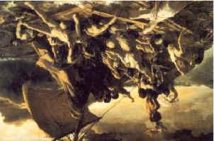 egotrip.de Juni 2001 Mozarts Oper "Idomeneo" im Staatstheater Darmstadt Es ist immer ein heikles Unterfangen, eine klassische Oper - mehr noch als ein Schauspiel - in eine moderne Umgebung zu versetzen. Überall lauern die Untiefen der Lächerlichkeit und Unange-messenheit. Wer es jedoch wagt, kann nur durch Konsequenz den Erfolg sichern, auch unter dem Risiko, dem Publikum einen Schock zu versetzen. Die von Claus Guth am Staatstheater Darmstadt inszenierte Oper "Idomeneo" von Wolfgang Amadeus Mozart geht dieses Risiko ein und erweist sich damit als gelungener Versuch einer eindringlichen Interpretation. Wenn in der Eröffnungszene die in Kreta gefan- gene trojanische Prinzessin Ilia (Melanie Kreuter) ihre hoffnungslose Liebe zum kretischen Prinzen Idamante besingt, tut sie dies in einer orange- farbenen Gefangenen-Kluft modernen Zuschnitts vor einem übergroßen Bild eines blauen Himmels und weißer Wolken, wobei die Scheinwerfer hellenische Helligkeit herbeizaubern. Quer über den heiteren Himmel prangt das Wort "Krieg", und zwei Katheder links und rechts symbolisieren die Antipoden in dieser Auseinandersetzung. Der hinzukommende Idamante trägt Militär-Tarnhosen und dazu Blazer und Krawatte, eine Mischung aus staatlicher und wirtschaftlicher Macht. Beide Protagonisten nutzen bei Ihrem Auftritt die Kathe- der im Stile machtvoller Persönlichkeiten. Die Anspielung auf die Bedeutung wirtschaftlicher Macht mag man auch in der Ähnlichkeit des Bildes zum Hintergrund von Bill Gates΄"Windows 95" deuten, muss es aber nicht. Die noch versteckte Ironie dieses Auftaktes verstärkt sich mit dem Fortgang der Handlung. Wenn König Idomeneo (Christian Elsner) als einziger Überlebender eines gewaltigen Sturmes - in Kapitänsuniform die Bühne tritt, so tut er dies durch eine ebenfalls bühnengroße Kopie des "Floß der Medusa" hindurch. Den naiv-programma- tischen Effekt eines solchen Hintergrunds wendet Guth jedoch ins Ironische, indem er das Bild auf den Kopf stellt. Davor lässt er dann Idomeneo im bluttriefenden Hemd auftreten. ![]() Das "Floß der Medusa", auf den Kopf gestellt Überhaupt nimmt Guth den Text des Librettos wörtlich. Werden in herkömmlichen Inszenie- rungen die Berichte über Katastrophen und blutgierige Ungeheuer mehr als allegorische Erzählungen präsentiert, die eher mythischen Ursprungs sind und nicht unbedingt mit Bühnen- leben zu füllen sind, so zeigt Guth zu diesen gesungenen Partien die Schrecken einer von Umweltkatastrophen und Krieg entstellten Welt. Wenn Ilia zu Beginn des dritten Aktes nach der plötzlichen Katastrophe ihre herzzerreißende Arie über Liebe und Tod singt und dabei ein Rosenbukett wie an einem Grab zerpflückt, schiebt sich aus dem Hintergrund das nächste unheilvolle Bild heran, dass zwei in Schutz- anzüge gekleidete Männer in einer brennenden und vergifteten Umwelt zeigt. In der folgenden Szene verschwinden Idamante und Ilia in ihrem Duett geradezu vor dem dominierenden Eindruck dieses Bildes, dass die beiden kleinen mensch-lichen Figuren im Vordergrund zur Bedeutungs- losigkeit verdammt. Den Höhepunkt der eisigen Ironie bildet das Défilé der Kriegsversehrten, die in Rollstühlen, mit Krücken und Verbänden unter einem großen "Sieg"-Schild die Auszeichnungen durch Idomeneo entgegen nehmen. Doch Claus Guth sattelt noch drauf: Als der Oberpriester dem König über das Leiden des Volkes unter dem Wüten des grausamen Ungeheuers berichtet, öffnet sich der zweite Vorhang zu einer deprimierenden Lazarettszene mit sterbenden Menschen, die sich langam aufrichten und als Chor ihre Klage heraussingen. Den eindringlichen Schlusspunkt setzt er mit den Vorberei- tungen zur rituellen Hin-richtung Idamantes durch den von einer Metzger- schürze umgürteten und mit einer veritablen Axt bewaffneten Vater, wozu Guth die Nachbildung einer amerikanischen Hinrichtungsliege auf die Bühne bringen und Idamante daran festschnallen lässt. Erst die Stimme des "Deus ex machina" aus dem Libretto rettet Idamante aus dieser tödlichen Situation und führt in der geliebten Ilia zu.