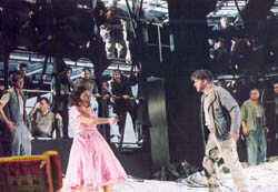 Die Traumfrau mit der 30-Dollar-Bildung Puccinis "La Fanciulla del West", szenisch und musikalisch ansprechend neu am Wiesbadener Staatstheater Von Hans-Klaus Jungheinrich Es gibt sie, die richtige Horse-Opera auf der Opernbühne: La Fanciulla del West, ein in Musik gesetzter Western, zugleich vielleicht das mit prägnantestem sozialkritischen Hintergrund bedachte Stück Puccinis (abgesehen vom Tabarro), der sicher kein musikdramatischer Emile Zola war, aber in vielen Details, die scheinbar nur genrehaft oder koloristisch angelegt sind, realistisch Gesellschaftliches berührte. Das sorgfältig gearbeitete Fanciulla-Libretto zeichnet die Goldsucher und Minenarbeiter als kaputte Typen, mehr Männer- als geschriebenen Gesetzen gehorchend, weich und folgsam freilich unter dem Einfluss der schönen, tugendhaften Schankwirtin Minnie. Ihr gelingt es endlich sogar, dem erbosten Männerkollektiv den Banditen Johnson abzujagen, der, von ihr liebend bezwungen, ebenfalls lammfromm wird und mit ihr ein neues Leben anfangen will. Zweisamer chaplinesker Abschied in lichte Fernen... Indem Puccini, beinahe ausnahmsweise, ein lieto fine im letzten Moment herstellt, verfährt er ähnlich utopisch-amerikanisch wie Kafka in seinem Romanfragment. Trotz romantisierender Überhöhung ist dieses Ende ebenso wenig kitschverdächtig wie die ganze Oper, die zum Inspiriertesten von Puccini gehört und zu Unrecht etwas im Schatten steht. Georg Köhl präsentierte in Wiesbaden eine schlüssige szenische Arbeit. Peter Werners Bühnenbild taugt mit geringfügigen Modifikationen für alle drei Akte; es begrenzt den angedeuteten Schankraum durch ein vor allem für Chorauftritte geeigntetes Baugerüst; im Vordergrund wird Minnies "Privatsphäre" durch ein Sofa markiert. Minnie, die Träumerin mit "Bildung für 30 Dollar", ist von Puppen und Familienerinnerungen umgeben. Schon zu Beginn zeigt sich Johnson kurz im Background als ihr "Wunschmann". Umso klarer wird, dass die bei seinem wirklichen Auftreten in ihr gewecke Zuneigung auch einem Wiedererkennen entspringt. Die Handlung läuft bedächtig an und erreicht ihren Kulminationspunkt, wenn Minnie im 2.Akt mit dem Sheriff Rance um Johnsons Kopf spielt (sie gewinnt, weil sie falsche Karten zieht). Köhl vermeidet es, Rance als einen zweiten Scarpia zu dämonisieren; auch er ist ein Gescheiterter, bedauernswert auch in seinem erfolglosen und hier zwar rau, aber nicht brutal vorgeführten Werben um Minnie. Raimo Laukka singt mit klar ansprechendem, kraftvollen Bariton, ohne in seiner Darstellung die Härte des "bad guy" im Dreierkonflikt zu forcieren. Johnson, sein tenoraler Widersacher, wird von Mauro Nicoletti zunehmend souveräner intoniert - analog zu seiner psychologischen Wandlung im Banne Minnies, die ihm vertrauensselig den Tresor der Goldsucher zeigt, der für ihn damit selbstverständlich "tabu" wird. Auch die Minnie von Barbara Schneider-Hofstetter mußte sich erst ein wenig frei singen, bis ihre Leidenschafts-Ausbrüche in den späteren Akten imponierende Substanz und Zuverlässigkeit bekamen. Mit leicht abgedunkelten Sopran-Timbre war sie zuvor aber auch schon bei subtil abgetönten Parlandostrecken und Lyrismen voll präsent. Glaubwürdig verkörperte sie eine Figur, die gerade durch ihre Ferne vom Realitätsprinzip (Minnie kennt weder Geschäftsgeist noch "weibliche" Berechnungskünste) von vornherein unwiderstehlich charismatisch anmutet. Das musikalische Signet dafür ist vor allem ihre zärtlich und großzügig ausgreifende Auftrittsmelodie. Sie wurde vom Dirigenten Wolfgang Ott mit ähnlicher Umsicht zelebriert wie die übrigen Feinsinnigkeiten der Partitur, in der impressionistisches Flair mit Handfesterem abwechselt. Auch um die zupackende Dramatik war die musikalische Diktion nicht verlegen, allenfalls um eine gewisse Lockerheit und Beweglichkeit des Duktus, die sich nicht allein durch die Originalsprache einstellen wollten. Chor und Orchester hatten insgesamt gutes Niveau. Termine: 22., 25. Februar Copyright © Frankfurter Rundschau 2002