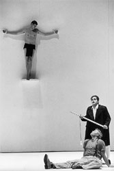 Christus straft die Meistersinger für die Frankfurter Oper wieder aufbereitet. Von Michael Dellith Dass es auch diesmal keine fränkische Butzenscheiben-Romantik geben würde, war zu erwarten. Stattdessen wieder karge weiße Wände, soweit das Auge reicht – am Sparprogramm der Frankfurter Bühnen hat sich seit 1993 ja auch nichts zum Besseren gewendet. Nel und sein Ausstattungsteam mit Max von Vequel-Westernach und Dorien Thomsen (Bühnenbild) und Ilse Welter (Kostüme) inszenieren sehr reduziert und über weite Strecken statisch, mit wenigen, dafür symbolträchtigen Details. So hängt während des ganzen 1.Aktes ein Gekreuzigter an der Wand, um beim Tumult der empörten Meistersinger vom Kreuz herabzusteigen und strafenden Blickes durch die Menge zu schreiten; zum Finale der Prügelszene im 2.Akt, bei der sich das Volk bedrohlich zu einem Block formiert und mit Davidssternen herumfuchtelt, fährt eine Hand Gottes mit riesigem Zeigefinger vom Schnürboden herab, und im 3. Akt kommen überdimensionierte blondzöpfige Frauen-Puppen zum Einsatz. Doch jetzt sind alle Wände schwarz, statt üppigem Festwiesen-Grün liegt tiefe Finsternis über der Szene. Die „Meistersinger" tragen Trauer, so als könnte die Oper nach dem Missbrauch zur Reichstags-Propaganda nie mehr unschuldig weiß daherkommen. Nel inszeniert also die Nazi-Vergangenheit der „Meistersinger" durchaus mit, will aber die Problematik der Ausgrenzung und des Fremdenhasses ins Allgemeingültige erhoben wissen. So steht an der Wand mit Kreide geschrieben „Raus!", und nicht etwa „Ausländer raus!" oder „Nazis raus!". Zu den „Heil"-Rufen des „Wacht-auf"-Chores gibt es auch keinen Hitler-Gruß. Und wenn das Volk zu dieser Hymne in schwarzen Stiefeln die rechte Hand aufs Herz legt, will das eine patriotische Geste sein, die so überall zu finden sein könnte. Stimmlich überzeugten an diesem Abend vor allem Jan-Hendrik Rootering als Schuster Sachs mit souverän geführtem, voluminösen Bariton, den nichts so schnell aus der Ruhe bringen konnte, und sein mit Dale Duesing auch schauspielerisch glänzend besetzter Widersacher Beckmesser, der zum Prügelknaben der Gesellschaft wurde. Jay Hunter Morris mit T-Shirt und Hosenträgern versprühte seinen Freibeuter-Charme als Ritter Stolzing auch stimmlich mit einem leicht strapazierten metallischen Timbre. Tadellos, aber recht neutral im Ausdruck mimte Nancy Gustafson Pogners Töchterchen Eva, die ständig verlegen an ihrer weißen Strickjacke herumnestelte; einen gestrengen Vater Pogner gab Magnus Baldvinsson, während Michael Nowak mit seinem leichten Tenor den Lehrjungen David bubenhaft durchtrieben zeichnete. Meisterlich agierte das Lehrbuben-Ensemble, uniform mit kurzen Mänteln und weißen Kniestrümpfen bekleidet. Der Chor entwickelte, wenn es sein musste, eine schier umwerfende Klangfülle. Die eigentliche Überraschung dieser Premiere aber kam aus dem Orchestergraben. Paolo Carignani demonstrierte, wie „italienisch" Wagner klingen kann. Mit viel Binnenspannung hielt er die Musik beweglich in ihrem dramatischen Wogen, zuweilen mit kammermusikalischer Delikatesse; die Streicher durften sinnlich blühen, das Blech samtig trumpfen. Und so gab es reichlich Bravos für den Dirigenten, der seine Musiker zum Schluss-Applaus auf die Bühne holte und neben dem fabelhaften Chor (Einstudierung: Andrés Máspero) feiern ließ, während wie schon 1993 über das Regie-Team ein Buh-Sturm hereinbrach. |