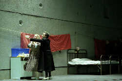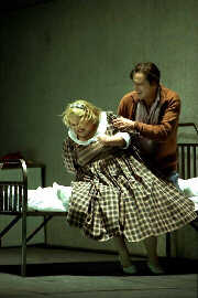 Silvana Dussmann (vgl. unser Interview) hat zweifellos den richtigen jubelnd-ekstatischen Ton, die strahlende, beeindruckend furchtlos attackierte, hinsichtlich der Intonation allerdings nicht immer präzise Höhe und auch genügend Volumen in der Mittellage für die Partie der hier als trotziger Teenager in Sweatshirtjacke mit Kapuze, Tüllrock, derben Schnürstiefeln und leicht punkiger, strähniger Out-of-bed-Frisur daherkommenden Kaiserin, der sie (auch in der großen Sprechszene des dritten Aufzugs) nichts schuldig bleibt, sieht man von einigen unsicheren Einsätzen und rhythmischen Freiheiten etwa in der Erwachensszene ab, die sich hoffentlich bei größerer Vertrautheit mit dieser für sie neuen Rolle geben werden. Die eigentliche Sensation war aber Elizabeth Connell in der kräftezehrenden Partie der Färbersfrau, die man selbst auf den besten Platten kaum so souverän bewältigt und dabei so schön gesungen gehört hat. Natürlich bleiben einem die einfach sensationellen Forteacuti am ehesten in Erinnerung, die in ihrer Mühelosigkeit an die Nilsson gemahnen und doch mehr Wärme aufweisen, aber nach dreißig langen Jahren im dramatischen (Mezzo-)Sopranfach, die die Künstlerin an alle großen Opernhäuser und zu den bedeutendsten Festivals führten, ist man fast noch mehr erstaunt, wie frisch die Stimme im erfreulich häufig eingesetzten Piano und auch noch am Ende der langen Vorstellung beim finalen, unglaublich strahlenden C klang – eine Ausnahmeleistung. Und auch darstellerisch bemühte die Sängerin sich nach Kräften, der Figur von Anfang an sympathische Züge zu geben und ihre Not in den Vordergrund zu stellen, die sich ihr Ventil in Härte und Spott sucht.