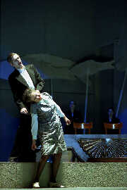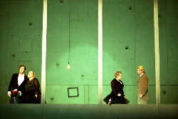 Szene aus der Strauss-Premiere der Oper Frankfurt. Bild: Thilo Beu Von Kurier-Redakteur Volker Milch Nein, ein märchenhaft glückliches Ende bekräftigt das Schlussbild von Christof Nels Inszenierung der Strauss-Oper "Die Frau ohne Schatten" nicht: Kaiserin und Färberin gehen in Schwarz, ein Vorhang schließt sich, und die nun doch eigentlich glücklich vereinten Paare werden hinter einer imaginären Scheibe schemenhaft als Suchende sichtbar, wie irritiert vom überirdischen Singsang der aus der Ferne herüber klingenden Ungeborenen. Nein, nach Christof Nels bisherigen Regie-Taten wird man von der Premiere der heiklen Strauss-Oper, der ein wenig vom Odium des überspannten Machwerks anhaftet, ein buntes Märchenspektakel erwartet haben. Dabei ist die kühle, strenge Optik, die der Regisseur und sein in Frankfurt schon für "Salome" und "Butterfly" mitverantwortlicher Bühnenbildner Jens Kilian hier gefunden haben, der rechte Rahmen, um der üppig wuchernden Geschichte, ihrer Klanggewalt und schillernden Instrumentationskunst zu begegnen. An magischen Momenten fehlt es vor und in dem brillant ausgeleuchteten, auf der Drehbühne rotierenden Kubus dabei nicht, gerade auch Dank einer musikalisch ungemein fesselnden Interpretation unter der Leitung von Sebastian Weigle. Er lässt die verschiedenen Klangsphären, die irdische des Färber-Paares und die kammermusikalisch ätherische von Kaiser und Kaiserin, in höchster Qualität zu ihrem Recht kommen. Mit der schier überwältigenden Leistung der Gäste und Ensemble-Mitglieder festigt Frankfurts Opern-Intendant Bernd Loebe einmal mehr seinen Ruf als Vokal-Gourmet und beschwert seinem Haus einen großen Abend. Dabei gehört "Die Frau ohne Schatten" zum Anspruchsvollsten, was die Literatur zu bieten hat. Als Färberin beeindruckt Elizabeth Connell mit strahlender Dramatik. Terje Stensvold gibt einen Barak mit baritonaler Wärme, Silvana Dussmann eine brillante Kaiserin, Stephen O´Mara einen mit heldentenoralem Aplomb makellos auftrumpfenden Kaiser. Als umtriebige Strippenzieherin bewegt sich Julia Juons souveräne Amme zwischen den Paaren. Was geschieht nun mit den Repräsentanten einander ferner Welten in Nels Inszenierung? Der Apotheose des Humanen, der Erlösung zweier kinderloser Paare durch Selbstüberwindung der nach dem "Schatten" der Färberin trachtenden Kaiserin scheint Nel im Dunkel der Erfahrung nicht so recht zu trauen. Die Geschichte schlägt ins Pathologische um: Die Kaiserin und die Färberin wirken da wie die zur Unfruchtbarkeit verdammten Patientinnen einer geschlossenen Anstalt, in der Entwicklung stecken gebliebene Riesenkinder, ausgeliefert ihren Alpträumen und diversen "Ticks" - Die matronenhafte Färberin knetet nervös ihre Finger, die Kaiserin erstarrt in einer tülligen Rock-Creation. Der Leere, der sie ausgesetzt sind, ist mit ein bisschen Fruchtbarkeit allein wohl nicht beizukommen, da bedarf es anderer Therapien. Mag sein, dass in Nels von tierköpfigen Anzugsträgern bevölkerten (Alp-)Traumwelt noch einige Traumata klug versteckt sind - die Spannung seiner starken Bilder teilt sich auch ohne erschöpfende Analyse mit. > |