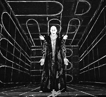 Hands unclean: Lady Macbeth aids her husband in murder. The Neverending Story By Eleonore Büning SCHWETZINGEN. The horror lasted for nearly a minute -- an eternity. Flutes screamed in an aggressive staccato tremolo, several octaves higher than usual; beneath them, the endlessly dark, gnawing agony of a dissonant string cluster, scraped out very close to the bridge. All accompanied by the drone of tubular bells being beaten to death with hammers. The result was an irresistibly unbearable mixture -- the kind of song produced by a gorgon rather than a siren. The blood froze in everyone's veins, their ears were nailed to the floor. Humans were quite powerless. They could still be seen moving their mouths beyond the wall of acoustic horror that was rising up from the orchestra pit. Their screams could only just be heard, as if from a long way off. But their words were unintelligible: what was the pale, bloody ghost of Banquo, climbing up the wall like a huge insect, actually saying to King Macbeth? What was the lemur-like Lady Macbeth screeching from the depths of her black, gaping maw? Or the choir of faceless courtiers, glittering in gold? When the din finally subsided and was replaced by a pleasant and tender violin ornament, the horror was by no means over. The celebration continued. Then the lesson was repeated, and repeated yet again. The principle of repetition has always been one of the most noticeable stylistic features in the music of Sicilian composer Salvatore Sciarrino: Almost all of his scraps of melody have their own echo, or shadow running on ahead. Even the very tiniest of musical elements -- a lamento motif descending in seconds, or a melancholy mordent -- returns in numerous variations in his scores. This da capo fad of his, together with an extremely subtle pianissimo with refined tone colors, are very much the compositional hallmark of Sciarrino, who likes to style himself as self-taught, and never belonged to any particular school or band of followers and yet is published by Ricordi. His operas have also been astonishingly successful, especially in recent years. Macbeth is his latest three-act opera and has now been premiered as a commissioned work in coproduction with the Frankfurt Opera and the Festival Musica per Roma at the Schwetzinger Festspiele festival. In a production by Achim Freyer, with costumes by Amanda Freyer, the audience was plunged yet again into the specific world of Sciarrino's sound. There were the same hushed, quick-fading groans from the brass, reminiscent of his opera "Luci mie traditrici" (My Telltale Eyes) -- which premiered in Schwetzingen four years ago under the title "Die tödliche Blume" (The Deadly Flower), demonstrated the decline of belcanto, and has since been restaged five times. There were the same whispering, strangulated-harmonic string tones reminiscent of, say, "Lohengrin" (1984), which should really have been called "Elsa" because of the somnambulant monologizing soprano part, and is recently scoring successes on stage again. And again there were those typical Sciarrino vocal lines, losing themselves in a labyrinth of baroque ornamentation. Young conductor Johannes Debus, freshly appointed as principal conductor of the Frankfurt Opera, was relaxed and circumspect in his treatment of the instrumental soloists from the Stuttgart Radio Symphony Orchestra, who were distributed partly backstage and partly in the pit. He always gave the singers secure musical support even when they were hanging upside down from the walls, and in doing so never lost sight of the fragile balance of sound, or of how to shape the eerily interweaving sonorities. The premiere thus seemed to be on its way to becoming a glorious success, as ever. But this time, in the middle of the axis of his symmetrically mirrored new work, Sciarrino composed the longest, loudest and nastiest fortissimo that has ever been heard in any of his pieces, not to speak of the Rococo Theater in Schwetzingen. And, in an audacious lapse of good taste, he even interspersed direct quotes from Mozart and Verdi in it. Yet Sciarrino, like Morton Feldman or Luigi Nono, is generally thought of as a master of omission, of well-placed pauses and diminuendi, and as an advocate of silence and laments. Do not be deceived, however -- the fortissimo of his humanizing messages has always thundered away just below the surface. The Deadly Flower, and now Macbeth, both involve ancient "badnight stories": archaic, oft-used themes that always have to be retold because they touch on humanity's basic evils. Sciarrino writes his own libretti, reducing the subjects to parables and plunging them continually into the depths of the subconscious. Macbeth, which he has worked on with interruptions for almost 25 years, is about psychological deformations. The power-hungry protagonist is destroyed by the mechanism of power. His role changes from criminal to victim, he murders and ends up being murdered himself. This parable is timeless and has parallels with recent history such as the Gulf and Balkan Wars, so the program suitably depicts a parade of Macbeth-like powerful rulers, from Nimrod, Genghis Khan and Robespierre to Mao Tse Tung and Bokassa. In contrast, on the stage of the Schwetzingen Rococo Theater, Achim Freyer created a space for individual nightmare that was entirely timeless and unreal, in keeping with the instructions in the score: Macbeth acted within a prison of black walls that tapered sharply toward the rear of the stage, and were painted all over with thinly-penned arcades and semicircular windows above the doors. Like a camera viewfinder, Freyer's perspectives led the eye astray. As if this nocturnally black shoe carton could be virtually tipped over, and as if the walls could become the floor and the ceiling a wall, with the skylights opening at the side and the windows below. Utilizing sophisticated and only slightly squeaky stage machinery, Freyer has his characters step out of the door tha