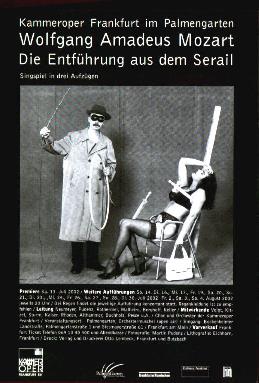 Einer flog über den Serail Von Stefan Schickhaus Auch das wäre ein denkbarer Regieansatz gewesen: Belmonte kommt, um seine Freunde aus einem Irrenhaus zu befreien. Der Serail ein Irrenhaus, gut bewacht vom Aufseher Osmin: Ja, so hätte man Mozarts Singspiel Die Entführung aus dem Serail durchaus inszenieren können, an einem mittleren Stadttheater vielleicht. Doch für eine Truppe wie die Kammeroper Frankfurt ist das längst nicht irre genug. Regisseur Rainer Pudenz geht noch einen konsequenten Schritt weiter und sagt: Alle, ausnahmslos alle Mozart-Akteure sind Eingewiesene, alles findet in der geschlossenen Abteilung statt. Keiner kommt, um jemanden zu retten, niemand schmiedet Fluchtpläne - alles nur Rollenspiele in einer großen Gummizelle. Vielleicht stellt die große, in 36 Planquadrate unterteilte Kulissenwand in der Orchestermuschel des Palmengartens ja eine solche Gummizellenstruktur dar. Geziert sind die Segmente jedenfalls sorgfältig mit Andy Warhol-artig aufbereiteten Camel-Dromedaren. Doch so genau muss man das ja alles nicht wissen, denn wer möchte, kann die Herren in den weißen Westen auch ausblenden. Sie tauchen ohnehin auf der Bühne nur ganz am Anfang und im Finale wieder auf, wenn sie ihre Patienten sedieren, um das Chaos einigermaßen in den Griff zu bekommen.