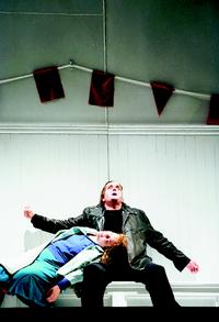 27. Mai 2002 Opernpremiere: Christof Nel inszeniert Richard Wagners Werk in Frankfurt Tristan – ratlos Von Albrecht Schmidt FRANKFURT. Über 25 Jahre haben die Frankfurter auf einen neuen „Tristan" gewartet. Nun hat sich Christof Nel an eine Inszenierung der Wagner-Oper herangewagt. Als provokanter Bühnen-Entrümpler konnte sich der Regisseur an den Frankfurter Städtischen Bühnen auf die geharnischten Publikumsproteste einstellen, die sich am Sonntag nach der Premiere artikulierten. Während Orchester und Sänger mit Bravos bedacht wurden, prasselten Buhrufe und Pfiffe auf Christof Nel sowie auf seine Bühnen- und Kostümbildner Jens Kilian und Margit Koppendorfer nieder. Radikalkuren ist man von Nel gewöhnt. So konnten die bei ihm üblichen kalkweißen Wände im beklemmend engen Schiffsflur ebensowenig verwundern wie die Personenzeichnung: Isolde in schlichter Kittelschürze und Tristan in salopper Windjacke als ein Paar, das zum Scheitern verurteilt ist. Ratlos sitzen die beiden bei ihrem Liebesduett auf der Bettkante. Weiße Lilien verwandeln das Liebeslager in eine Todesstätte. Das alles wirkt unterkühlt und desillusionierend. Im letzten Akt verkommt die Inszenierung zu bloßem Aktionismus. Umgestürzte Ledersessel und eine Regenpfütze suggerrieren Zerstörung und Morbidität. Wenn es am Ende zum Gemetzel im Regenloch kommt, wenn König Marke sich in Tristans Blut suhlt und sich die Leichen in den Fauteuils häufen, dann ist die Würde verletzt, die Isoldes Liebestod verdient. Ihre unbestreitbaren Qualitäten hat die Frankfurter „Tristan"-Produktion in der Musik. John Treleaven ist ein kraftvoller, tenoral geschmeidiger Tristan mit guter Textverständlichkeit und anhaltender Bühnenpräsenz. Frances Ginzers Isolde müsste für Wagners unendliche Melodien noch den längeren Atem entwickeln. Das Museumsorchester unter der Leitung von Paolo Carignani begann enttäuschend: Intonationsmängel und Spannungsverluste kennzeichneten das allzu zerklüftet wirkende Vorspiel. Im Laufe des Abends jedoch zeigte sich Carignanis Modulationsfähigkeit und führte zu einem hervorragenden Gesamteindruck. Weitere Aufführungen: am 29. Mai sowie am 1. , 4., 8., 19., 26. und 29. Juni – jeweils ab 17 Uhr. |