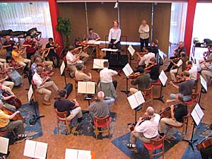 Il direttore del festival Wolfgang Wagner saluta gli artisti ed altri collaboratori in occasione della presentazione del nuovo allestimento di Der fliegende Holländer.