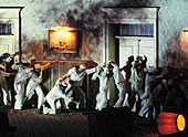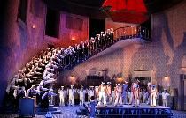 Agence France-Presse At Bayreuth, Claus Guth Directs Powerful New Production of Wagner's Flying Dutchman The young German director Claus Guth made an impressive debut here on Richard Wagner's famed Green Hill, offering a deeply disturbing glimpse into madness and psychosis in his new reading of Der fliegende Holländer (The Flying Dutchman) which opened the 92nd Bayreuth Festival here on Friday. Guth and his set designer Christian Schmidt were enthusiastically applauded by Bayreuth's notoriously critical first-night audience, even if a few boos were heard as they took their bows at the end of the evening. Up-and-coming German conductor Marc Albrecht, also making a stunning festival debut, directed a strong, if not great, cast of singer-actors, headed by British bass John Tomlinson in the title role and US soprano Adrienne Dugger as Senta, who were all rapturously received for a musically gripping performance. Guth, 39, gave a virtuoso display of new ideas for Wagner's sea-faring saga, sending the audience on a dark and frightening journey into the depths of the human psyche. He was inspired by the nightmarish visions of romantic writers such as Edgar Allan Poe and E.T.A. Hoffmann, Guth told a news conference held in the restaurant of the Festspielhaus on Saturday. In fact, aside from naval costumes and a few props, Guth and Schmidt dispense almost entirely with everything nautical from the tale of a Dutch captain condemned to roam the oceans eternally until he can find a woman to marry him and save his soul. Instead, all the action takes place in Senta's and the other protagonists' mind and the stage is a run-down sparsely furnished interior, dissected diagonally by a huge spiral staircase. The upper half of the set is the exact inverse of the lower half and the staircase acts as the boundary between the real world below and terrifying world of nightmare and madness above. In a carefully choreographed dance of death, the characters constantly cross and re-cross that boundary. And Guth underlines the nightmarish inversion of the two different planes by doubling Senta with a mute young girl (astonishingly played by an eight-year-old schoolgirl), and making Daland, Senta's father, the mirror image of the Dutchman, the object of her dreams and sexual desires. "The Doppelgänger is one of the key themes of Romantic German literature, allowing you to peer into the abyss of the soul," Guth said. And the figure of the Dutchman was a screen onto which not only Senta projected her secret desires and longings, but Daland and Erik, too. Guth's is a fascinating multi-layered reading of Wagner's drama, full of tantalising and constantly shifting ideas and images that demand to be seen again. And, with everything darkly and threateningly lit by lighting director Manfred Voss, there are some spine-chilling moments, such as when the Dutchman's disembodied shadow walks slowly down the staircase. The supporting roles — Uta Priew as Senta's (blind!) nurse Mary, Endrik Wottrich as Senta's suitor Erik and Tomislav Muzek as the Steersman — were all well sung, with the Bayreuth Festival chorus and orchestra in superb first-night form. The festival was set to continue Saturday with the first revival of Philippe Arlaud's staging (under the baton of star conductor Christian Thielemann) of Tannhäuser, roundly panned by the critics last year. Wagner's mammoth four-opera Ring cycle will follow in the four-year-old staging of Jürgen Flimm conducted by Adam Fischer, with Rheingold on Sunday, Die Walküre on Monday, Siegfried on Wednesday and Götterdämmerung on Friday. Bringing up the rear will be Keith Warner's production of Lohengrin on Saturday, being staged for the fifth and last time, with British conductor Sir Andrew Davis in the pit. Up until August 28, Dutchman will be performed seven times, Tannhäuser and Lohengrin each five times and the complete Ring three times. COPYRIGHT 2003 Agence France-Presse. |