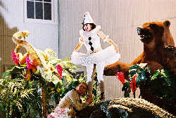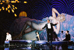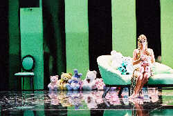 Die Frankfurter Neuproduktion von Jones und Miskimmon betonte freimütig den Charakter des Surrealen und gewann sich dadurch eine Materie zur spielerischen Verfügung mit neuen Sinnoptionen. In stets neuem Rahmen agiert ein Wesen, dessen permanenter Gestaltwechsel auch der Kostümbildnerin Buki Shiff reichlich Arbeit abforderte und steile Vorlagen für höchst anschauliche Ausformungen des Weiblichen bzw. dessen Phantasieformen lieferte. Zu beidem eröffnet bereits der "Prolog auf dem Theater" ein erstes Tor, wenn dem Tierbändiger ein Stillleben der Raubtiere in astreiner Wachturm-Paradies-Ästhetik zusammenstellt und gleichzeitig die Vorhangeinblendungen die Vielzahl von Lulus Rollen durch Anrufung der Vielzahl ihrer Namen veranschaulichen. Dieser märchenhafte Ton spiegelt sich weiters in der Stereotypie einer ritornellhaften Beendigung mehrerer Szenen durch den immergleichen Auftritt einer stummen Polizei, die mal wieder eine Leiche wegzuräumen hat.