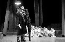 FINANCIAL TIMES April 8, 2005 Frankfurt Opera: Khovanshchina Alcoholism, depression and loneliness were a few of the things that killed Modest Mussorgsky in 1881. He was 42 years old. He left behind the unfinished piano score of Khovanshchina, a vast historical opera that was, among other things, a criticism of Tsar Peter I. Rimsky-Korsakov, Stravinsky and Shostakovich all had a go at completing and orchestrating the opera but it still has not really entered the repertoire. Each good revival makes you wonder why not. Bloodier and more turbulent than Boris Godunov, Khovanshchina is also more politically complex than Mussorgsky's earlier opera. For all that it deals with historical events, the piece is laden with ambiguity and was always intended to be read as contemporary. Christian Pade does this meticulously. The scribe lives in a cardboard box, the children sniff glue, the power, corruption and murder are all convincingly immediate. Alexander Lintl's starkly symbolic sets somehow sit well with Pade's detailed realism. The strongest moments are those of innuendo - Khovansky's troupe of child ballerinas, shivering in their underwear, or the persecuted Emma's defensive body language. Both Pade and Kirill Petrenko share a flair for the garish. Petrenko, the very young general music director of Berlin's Komische Oper, conducts Shostakovich's astringent version of the score (except for the ending, where he chooses Stravinsky) with a sure sense of structure and splashy effects. He is good at loud and bombastic but can also do brittle, vulnerable and compassionate, though the third-night orchestra was not on top form. Gregory Frank is steely yet dissolute as Khovansky, Göran Eliasson plausibly self-destructive as his son, with Hans-JürgenLazar's peevish scribe adding contrast. Lars Erik Jonsson is a powerful Golitsyn, Elena Cassian a determined Marfa. |