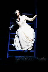 Beifallsstürme für fast vergessene "Lucrezia Borgia" Von Thomas Schmitz-Albohn GIESSEN. Wie konnten die Musiktheater im Lande nur ein so bühnenwirksames Stück wie Gaetano Donizettis Oper "Lucrezia Borgia" lange Zeit unbeachtet in der Schublade schmachten lassen? Drei Jahrzehnte, nachdem das Werk zuletzt auf einer deutschen Bühne zu sehen und zu hören war, ist es im Gießener Stadttheater wieder zum Leben erweckt worden. Das Wagnis, die fast vergessene Oper wieder ins Rampenlicht zu rücken, mündete für alle Beteiligten in einen triumphalen Erfolg: So wollten die Beifallsstürme bei der Premiere am Samstagabend nach fast dreistündiger Aufführung kein Ende nehmen. Pünktlich zur Weihnachtszeit hat Gießen seine große Oper. Donizettis 1833 uraufgeführtes Werk über die berüchtigte Giftmörderin der Renaissance enthält all das, was die Herzen der Opernliebhaber aufgehen lässt: Schauerdramatik, Leidenschaften, Melodienreichtum und über allem Belcanto - also jene hochvirtuose Gesangskunst der Italiener, die das Melos bei vollendeter Beherrschung wunderschön frei strömen lässt. Die Arien und vor allem die bald durch spärliche Akkorde, bald durch orchestrale Finessen gestützten Ensembles sind meisterhaft gearbeitet und werden zu dramatischer Gesamtwirkung gebracht. Die Partitur verzichtet zwar auf romantische Genremalerei, arbeitet aber mit Stimmungen, um das Bühnengeschehen zu gliedern und zusammenfassen. Es ist das große Verdienst der Gießener Produktion, dass sie die unzweifelhaft schlagkräftigen Qualitäten des Werks geschickt herauszustreichen versteht und die Schwächen - vor allem in der teils abstrusen Handlung - beiseite drängt. Überhaupt hat das Stadttheater für diese aufwändige Inszenierung weder Kosten noch Mühen gescheut und ist dabei an seine sowohl künstlerischen als bühnentechnisch und finanziell machbaren Grenzen gegangen. So konnte eine ganze Reihe erstklassiger Künstler verpflichtet werden, die in ihrem Zusammenwirken eine ästhetisch ansprechende "Lucrezia Borgia" wie aus einem Guss präsentieren. Am Pult agiert, wie schon bei Bellinis "Norma", der Mailänder Belcanto-Spezialist Gabriele Bellini, der auch bei diesem Donizetti ganz in der Partitur aufzugehen scheint. Mit Esprit und Sinn für die melodische Inspiration dirigiert er das Philharmonische Orchester Gießen, zelebriert die Stimmungen und stellt eine große dynamische Flexibilität unter Beweis. Als Fachmann für Belcanto hat er natürlich eine glückliche Hand für die gleichmäßig strömende Musik und die unverzichtbare Feinheit des Tones. Und wie er den Sängern genügend Freiraum und oft genug Vorrang einräumt, das beweist seine Klasse. Gastregisseur Helmut Polixa, der mit dem Dirigenten schon bei "Norma" zusammen gearbeitet hat, lässt sich diesmal ganz von den starken Gefühlen leiten. Gemeinsam mit Bühnen- und Kostümbildner Stefan Rieckhoff findet er für den jeweiligen emotionalen Gehalt einer Szene einprägsame, auf eine bestimmte Farbe reduzierte Bilder, die den Zuschauer sofort ansprechen und in die Gefühlswelt der Protagonisten hineinziehen: Venedig zu Beginn ist ganz in Blau getaucht. Auf großen, transparenten Tüllbahnen sind Wasserspiegelungen zu sehen. Es gibt keine Gondeln, keine bunten Kostüme, und der Trubel eines Maskenfestes spielt sich nur in der Musik ab. Der Akzent liegt auf den finsteren Gedanken und anklingenden Todesahnungen. So fällt fahles, düsteres Licht auf die Festgesellschaft in monotonem Graublau. Alles ist dem Farbklang untergeordnet. Noch deutlicher wird dies im Palast von Ferrara mit einer feuerroten Treppe in tiefschwarzer Umgebung. Genau wie der heute weitgehend vergessene, expressionistische Theaterregisseur Leopold Jeßner, der im Berlin der Weimarer Republik die Treppe als Gestaltungsmittel auf der Bühne einführte und starke Farben als Bedeutungsschwerpunkte einsetzte, lässt auch Polixa auf einer solchen Treppe spielen. Auf den Stufen der Treppe erteilen die rot gekleideten Höflinge des Herzogs einem Spion eine blutige Lektion, und wenn das rot gekleidete Herzogspaar darauf wieder einmal einen seiner Ehekriege ausficht, blitzen in dieser "Orgie in Rot" verletzte Liebe, Eitelkeit und Machtgier auf. Das Gelingen einer Belcanto-Oper hängt natürlich entscheidend von den Protagonisten auf der Bühne ab - und auch da weist die Gießener Inszenierung eine hervorragende Besetzung auf. In der Titelrolle der Lucrezia Borgia bietet Donizetti einer jeden Primadonna schier unbegrenzte Entfaltungsmöglichkeiten für ihre Stimme. Und diese Möglichkeiten lässt sich die bildhübsche, italienische Sängerin Giuseppina Piunti nicht entgehen, um sich nach ihrer bejubelten Norma-Interpretation in Gießen erneut als große, ausdrucksstarke Darstellerin ausweisen. Die überreiche Ausstattung ihres Gesangsparts mit etlichen Koloraturen stellen sie nicht einen Augenblick vor Probleme. Sie verfügt über eine brillante Technik, über Feuer des Temperaments und nimmt scheinbar mühelos jede Klippe. Aber was ihre Darstellung der rachsüchtigen, aber auch liebenden und verzweifelten Frau so echt wirken lässt, das ist ihre enorme sinnliche Ausstrahlung. Als ihr jugendlicher Liebhaber Gennaro glänzt Johan Weigel mit einem überwältigenden Tenor, wie man ihn sich für eine Belcanto-Oper nur wünschen kann. Die lyrische, samtig-schöne Stimme strahlt weit aus und schmeichelt sich dem Hörer ins Ohr. Einen solchen Gegenspieler muss der Herzog zu Recht fürchten. Diesen Fürsten singt Paolo Ruggiero, der in der besten Tradition der italienischen Baritone steht: Agil, leicht in der Tongebung, fähig zu kräftigen Akzenten und mit rhythmischem Schwung ist er ein Herzog wie aus dem Bilderbuch. Mit Temperament und großer Ausdruckskraft verkörpert die ukrainische Mezzzosopranistin Alina Gurina in einer Hosenrolle Gennaros Freund Orsini. In konzertanten Aufführungen hat sie schon als Dalila und Carmen bewiesen, was für eine prächtige Stimme sie hat. In der Ro