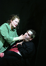 Verhauchende Lust Dieser "Tristan" – Premiere war 2003 – ist zweifellos die schlüssigste Inszenierung, die Nel für Frankfurt schuf: Der 1. Akt – eine Art Unterdeck – voller Spannungsdichte und klug gesteigert dazu, im 2., ungewohnt hellen Akt ein großer Schlafraum, in dem das Geschehen fast ins Magische gleitet durch das Spiel des Liebespaares wie der hier fast archaischen Figur der Brangäne, die ihr Taglied auf offener Bühne singt, im 3. dann ein unbewohntes, dunkles Kareol und ein brutales Gemetzel mit viel Blut, als wollte Nel dem Publikum auch die andere, "tägliche" Seite des Todes vor Augen führen. Im Solistenensemble gab es im nun zweiten Jahr einige Neubesetzungen. Susan Bullock übernahm die Partie der Isolde, sie ist weniger die Heroine, sondern eine leidenschaftliche junge Frau voller starker Emotionen, klar in den Gesangslinien und ohne scharfe Spitzen bis hin zur verhauchenden "höchsten Lust". John Treleaven ist dem Premiereneindruck als "seelisch Leidender" und reflektierender Tristan treu geblieben. Neu im "Tristan"-Ensemble ist Martina Dike, mit ihrem bisweilen glühenden, relativ hohen Mezzosopran eine Brangäne von hinreißender Präsenz und enormer Darstellungskraft. Neu sind auch Nel Barth als ein ausdrucksvoll mitleidender, nie haudegenhaft röhrender Kurwenal, auch Hans-Jürgen Lazar als markanter Melot. Nur: Seine ständigen stummen Zeichen zu Marke sind eine der Schwächen der Inszenierung. Den König Marke singt wandlungsfähig und beweglich Gregory Frank. Paolo Carignani am Pult nimmt zügige Tempi, erkennt klug die Momente des unendlichen Verweilens, drängender wirken da die Aufstiege zu den ekstatischen Gipfeln. Das Orchester besticht, von einigen Nervositäten und dem etwas "direkten" Klang im 1. Akt abgesehen, durch seine Reaktionsschnelligkeit, Schlagkraft und entschlackten Klangfarben. Viele Bravos für alle. (jö) |