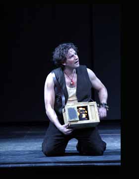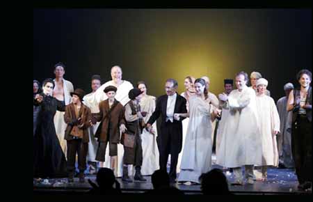 Per questa edizione dell’opera, interprete di Papageno è Nicola Ulivieri (presente alla prima e dopo sostituito con Markus Werba): non a caso egli è l’unico italiano di una agguerrita compagnia di cantanti rigorosamente tedeschi. Brillante, spiritoso, è stato irresistibile interprete l’anno scorso di Guglielmo in ‘Così fan tutte’. Nicola Ulivieri-Papageno dunque, una coppia perfetta Caratterialmente Papageno non può essere che italiano, prerogativa che traspare anche dall’impostazione regista di Daniele Abbado. Ha il temperamento latino, quello che mi sento addosso sia dal punto di vista fisico che vocale. E per la lingua ha avuto qualche problema? All’inizio parecchi, davvero. Ma devo ringraziare tutti, in particolare Dinah Helal che ha lavorato con me tutti i giorni per tante ore, frase per frase, sulla pronuncia e adesso sono soddisfatto, perché ho fatto grandi progressi. Qualche tempo fa non pensavo proprio di poter essere il primo italiano della storia a cantare Papageno a Baden Baden. Come è avvenuta la sua scelta? Quando Claudio Abbado seppe che l’avevo già fatto una volta, mi chiese se mi rendevo disponibile per questa produzione. Ne sono stato subito lusingato, che abbia accettato questo ‘esperimento’ di avere un italiano in mezzo a tutti questi tedeschi, più volte interpreti de il Flauto. A Claudio Abbado quindi deve la sua presenza in questa produzione Abbado l’ho notato ancora, riesce a vedere le tue possibilità ancora meglio di te. Per essere sincero, i primi giorni di prove qui a Reggio mi sentivo fuori luogo, e mi sono detto: che cosa ci faccio qui? Adesso devo dire che aveva ragione. Mi ha dato un’opportunità incredibile. Potrò dire di essere stato il suo primo Papageno, visto che anche lo debutta: è straordinario per me. Come è musicalmente questo Flauto? E’ assolutamente magico. Lui già faceva cantare le consonanti con l’italiano, ma con il tedesco non ne parliamo. La principale caratteristica della sue interpretazione di questa partitura è la leggerezza e il brio. Vederlo lavorare con il figlio Daniele poi è dolcissimo per me, si aiutano dando davvero il massimo di loro stessi. Una bacchetta eccezionale, dunque la sua Con lui anche questa volta si viaggia in un'altra dimensione. Le voci vengono inserite come se fossero degli strumenti. Per lo più ci fa cantare piano ‘in punta di piedi’ e quello che ne risulta è di straordinaria brillantezza. Abbado rivela tutto quello che è racchiuso in questo capolavoro e il pubblico che ascolta si deve gustare un’operazione di ensemble che va al di là del canto stesso. | |