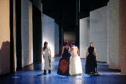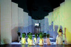 Auf die Bühne gelangte diese Oper erst 199 Jahre nach ihrer Entstehung 1980 im Schlosstheater in Drottnigholm. Nun hat "Proserpina" im Schwetzinger Rokokotheater anlässlich der diesjährigen Festspiele zu ersten Mal deutschen Boden betreten. Die Inszenierung besorgte Georges Delnon, noch Intendant in Mainz und ab der nächsten Spielzeit in gleicher Funktion in Basel. Auch für die Opernproduktionen in Schwetzingen wird er ab 2008 verantwortlich sein. Vom Gegensatz von Schwarz und Weiß hat er sich leiten lassen für eine ansonsten unspektakuläre, bisweilen uninspirierte Inszenierung, in der zu viel stilisiert und zu wenig agiert wird. Allerdings macht das Libretto des schwedischen Hofdichters Kellgren es einem Regisseur auch nicht gerade leicht, denn die Handlung ist kaum dramaturgisch stringent angelegt, sondern besteht - hier noch ganz barock - eher aus Tableaus, Szenen ohne Entwicklung. Ein etwas weniger abstraktes Bühnenbild (die trichterförmigen Wandelemente verändern sich zu geschlossenen Räumen oder öffnen Gassen zur Seite hin) hätte dem ziemlich leblosen Spiel sicher mehr Atmosphäre verliehen. Einzig in der Entführungsszene kommt eine Spannung zustande, die man in den meisten Szenen vermisst. Dafür hat sich der Regisseur ein paar Gags erlaubt, die aber kaum beeindrucken können. So lässt er Jupiter am Schluss als Deus es machina mit einem Hubschrauber einfliegen, den man aber zum Glück nur brummen hört. Zu Gesicht bekommt man dagegen Ceres` verzweifelten Appell an die Mitwelt, ihr ihre Tochter zurückzugeben, den sie per TV-Botschaft verkündet.