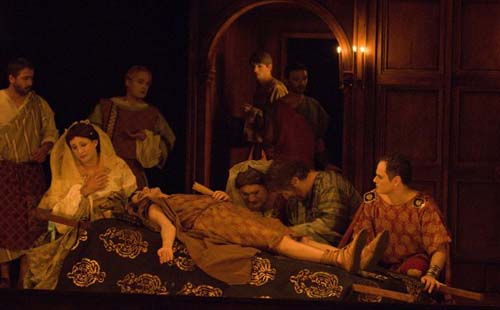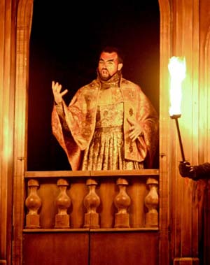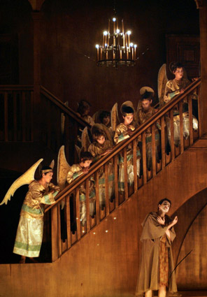 Nancy. Opéra National de Lorraine. 24-I-2008. Stefano Landi (1586-1639) : Il Sant’Alessio, drame musical en trois actes avec prologue sur un livret de Giulio Rospigliosi. Mise en scène : Benjamin Lazar. Scénographie : Adeline Caron. Costumes : Alain Blanchot. Lumières : Christophe Naillet. Chorégraphie : Françoise Denieau. Avec : Paolo Lopez, Sant’Alessio ; Max Emanuel Cencic, l’Epouse ; Alain Buet, Eufemiano ; Xavier Sabata, la Mère ; Damien Guillon, Curtio ; Pascal Bertin, le Messager ; José Lemos, Martio ; Luigi De Donato, Le Démon ; Jean-Paul Bonnevalle, La Nourrice ; Terry Wey, Rome/La Religion ; Ryland Angel, Adrasto. La Maîtrise de Caen (chef de chœur : Olivier Opedebbeck), les Arts Florissants, direction : William Christie. |