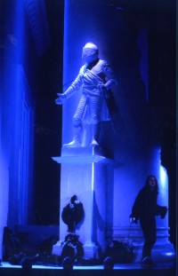 Die Handlung sei hier noch einmal kurz zusammengefasst. Der erotomane Don Giovanni ist maskiert nächtens bei der schönen Donna Anna mit eindeutigen Absichten eingestiegen und tötet im Duell deren zur Hilfe herbeieilenden Vater, den Komtur. Donna Anna bittet ihren Verlobten Don Ottavio um Rache an dem noch unbekannten Täter, während dieser sich mit seiner verflossenen Ehefrau Donna Elvira herumschla- gen muss, die ihm überall hin folgt. Geschickt schiebt er sie seinem leidgeprüften Diener Leporello hin, der ihr dann genüsslich in der "Register-Aarie" die erotischen Erfolge seines Herrn vorblättert. Anschließend gerät Don Giovanni in eine Bauernhochzeit und beginnt sofort, die junge Braut Zerlina zu umgarnen. Die vor dem bekannten "Reich mir die Hand zum Leben" dahin Schmelzende wird gerade noch von der hinzukommen- den Donna Elvira gerettet und aufgeklärt. Bei einem zufälligen Treffen mit dem bekannten Edelmann Don Giovanni erkennt Donna Anna in ihm den Mörder ihres Vaters und beschließt zusammen mit Don Ottavio, die Rache selbst in die Hand zu nehmen. Bei dem von Don Giovanni für die Hochzeitsgesellschaft veranstal- teten Fest - eigentlicher Grund ist die Braut Zerlina - erscheinen die Rächer vermummt und entlarven Don Giovanni, doch ein aufkommendes Gewiiter treibt die ganze Gesellschaft auseinander. Als Don Giovanni in Leporellos Kleidung auch noch Elviras Zofe verführen will - die fängt man nicht als Edelmann - und derweil der sichtlich überforderte Leporello als Don Giovanni mit Donna Elvira flirten muss, zieht sich die Schlinge zu. Der falsche Don Giovanni wird von der rächenden Truppe unter der Führung des fast gehörnten Bräutigams Masetto gefasst und entgeht dem Tod nur durch das Eingeständnis des Kleidertausches. Don Giovanni selbst hatte - als Leporello - die Häscher auf seinen vermeintlichen Herrn gehetzt. Bei einem zynischen Gelage am Grabe des Komturs lädt Don Giovanni dessen lebensgroße Statue zum Abendessen ein und erhält eine deutliche verhehmbare Zusage. Ungerührt lässt er das Essen vorbereiten und lässt sich auch nicht von einem letzten Rettungsver- such Donna Elviras erschüttern. Schließlich tritt die Statue des Komturs durch die Tür und verdammt den bis zuletzt reuelosen und selbstbewussten Don Giovanni zur Höllenfahrt. Der abschließende Epilog der Überlebenden fasst dann noch einmal die "Moral von der Geschichte" zusammen. Nach der Ouvertüre ist das Bühnenbild der erste Eindruck einer Inszenierung. Das Sehen kommt vor dem Hören. In Darmstadt hat Hartmut Schörghofer eine bewusst enge Stadtkulisse mit einem Turm-Torso auf die Bühne gestellt, mit der er zwar den Spielraum auf eine kleine Fläche an der Rampe verengt, aber den- noch immer wieder Wege in das Innere der Kulissen eröffnet. Geschickt sucht sich vor allem Don Giovanni durch dieses Labyrinth immer wieder einen Zugang zu neuen Abenteuern und Fluchtwege aus prekären Situationen. Die Drehbühne verändert die Umgebung auch während der Handlung und gibt dadurch immer wieder andere Blickwinkel frei. Besonders beeindruk- kend zeigt sich die Kombination von Kostümen und Bühnenbild in den dramatischen Szenen mit dem Standespersonal - Donna Anna, Donna Elvira, Don Ottavio. Die schwarzen Gewänder vor weißen oder auch mal schwarzen Wänden spiegeln den katholi- schen Hintergrund des spanisch-österreichischen Kultur wider und verbreiten geradezu eine klerikale Beklemmung. Das Zeitkolorit wird durch die historischen Kostüme ausdrücklich unterstützt. Friedrich Meyer-Oertels Inszenierung verzichtet auf jegliche Zugeständnisse an Modernierungsfreunde. Neben Bühnenbild und Kostümierung bleibt das Stück strikt in seiner Zeit und - seltsam - wirkt gerade dadurch zeitlos. Dies erreicht Oertel mit einer zuge- spitzten Konturierung der Charaktere. Da ist vor allen anderen Don Giovanni zu nennen, der hier nicht - wie so oft - als mehr oder minder akzeptabler Lebemann auftritt, sondern als skrupelloser, mit allen Wassern gewaschener Verführer. Dies wird bereits in der ersten Szene klar, wenn er den Komtur nicht im "fairen" Fechtkampf sondern hinterrücks mit einem kaum sichtbaren Dolch tötet. Dass es sich bei den Objekten seiner Begierde um Frauen handelt, ist fast neben- sächlich. Im Mittelpunkt steht seine Gier, den Augen- blick zu genießen, und seine Leugnung jeglicher Schranken. Insofern steht Don Giovanni auch für den skrupellosen Machtpolitiker oder Medienstar heutiger Tage, ohne das dies plakativ ausgebreitet werden muss. Werner Volker Meyer bringt diesen Wesenszug Don Giovannis meisterhaft zum Ausdruck, so wenn er nach zwei, drei "Augenblicken" Zerlina mit geradezu mit professioneller Kunst und zynischen Lügen zu verführen trachtet, oder wenn er die wütende Donna Elvira vor Aller Augen als verrückt darstellt. Sein Don Giovanni ist bis zum Schluss immer Herr der Lage, geht über Leichen, notfalls auch über die seines treuen Dieners Leporello, und hat Spaß daran, die Welt zum Tanzen zu bringen. Selbst der finalen Todesdrohung der Komturstatue tritt er noch lachend entgegen. Als Gegenentwurf zu dieser Welt einer entgrenzten Libertinage baut Oertel das Trio um Donna Anna auf, die ihre beiden Gefährten Don Ottavio und Donna Elvira deutlich überragt. Im Gegensatz zur wütenden und doch liebenden Donna Elvira folgt sie einem Plan, für den sie Don Ottavio benötigt. Dieser soll nicht nur den Tod des Vaters rächen sondern auch die Flamme der erotischen Begierde löschen, die sie in Don Giovannis Augen entdeckt und in sich selber gespürt hat. Diese Begierde verstößt gegen den katholischen Sittenkodex und ist daher radikal zu vernichten. In Don Ottavio sieht Anna einerseits den willfährigen weil hingebungsvollen Vollstrecker, andererseits einen faden Langeweiler ohne das Feuer, das sie innerlich gefangen hat. Ihre geradezu überirdische Trauer und Rachsucht sind nur als selbstzerstörerischer Reflex einer erzkatholischen Erziehung zu verstehen.