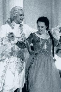 Don Ottavio bleibt auch bei Meyer-Oertels Insze- nierung der sittsame Spießer, wie wir ihn kennen, auch wenn er die gefühlvollsten Seufzer-Arien über die stets vertagte Erfüllung seiner Sehn- süchte von sich gibt. Donna Elvira dagegen ist ein wahres Pulverfass voll von liebesgetränkter Wut. Bis kurz vor Don Giovannis Ende hofft sie noch auf seine Bekehrung und Rückkehr zu ihr. Auch die schlechteste Behandlung seitens des Wüstlings können dieser Liebe nichts anhaben. Diese beiden Frauen, und mit Abstrichen auch Zerline, stehen für den tief sitzenden Hang der Frauen zu skrupellosen Machos, den man noch heute beobachten kann. Als dritte Gruppe stehen die Bauern für eine pragmatische und unverstellte Weltsicht. Vor allem Zerlina lässt sich zwar durch die Möglichkeit, Schlossherrin zu werden, zur Untreue verleiten, gewinnt aber nach der Enttäuschung überra- schend schnell ihre pragmatische Weltsicht zurück und erobert Masetto in einer betörenden Schmeichel-Arie wieder zurück. Als einzige der Frauen geht sie schadlos aus dem Geschehen hervor. Bei Meyer-Oertel gewinnt der "Don Giovanni" Dimensionen über eine moralische Lehrfabel hinaus. Hier tun sich Abgründe zwischen den weißen Mauern Spaniens und den schwarzen Kleidern der Edlen auf. Don Giovanni selbst trägt entweder schwarz oder weiß - außer wenn er seinen Diener imitiert - und dazwischen eröffnen sich Abgründe an Gemeinheit und skrupelloser Selbstverwirklichung auf. Dass diese am Ende scheitert, ist eher eine Randbemerkung, aus- löschen lässt sich diese Grundhaltung nicht. Die ganze Inszenierung lebt von einem hohen Tempo, das sich weniger in der Abfolge der Szenen als in der Intensität der Gefühle dokumen- tiert. Die äußerst akzentuierte und konturierte Musik des Orchesters trägt wesentlich zu dem Gefühl der Verdichtung bei. Da kommt kein Akkord breit daher, von den ersten düsteren d-Moll-Akkorden der Ouvertüre bis zu den stür- mischen, fast heiteren des Endes wirkt jeder wie gemeißelt. Die einzelnen Instrumente kommen transparent zur Geltung und unterstützen die Handlung durch ihre Dynamik wirkungsvoll. Obwohl die Musik nie dominiert und den Sängern genügend Raum gibt, scheint sie omnipräsent. Die Akteure wurden dem hohen Anspruch durch- weg gerecht. Allen voran bildeten Volker Werner Meyer als Don Giovanni und Christoph Bege- mann ein perfekt aufeinander abgestimmtes Paar. Beide warfen sich die Bälle zu wie Jongleure und schienen sich blind zu verstehen. Meyer über- zeugte jedoch nicht nur schauspielerisch als lustbetonter Zyniker sondern auch stimmlich, obwohl seine Rolle keine großen, gefühlsbetonten Arien zu bieten hat. Christoph Begemann spielte die Rolle des unterdrückten und doch bauern- schlauen Dieners mit wahrer Wonne. Sein Leporello schimpft, poltert, klagt seinen Herrn an und schafft ihm doch Freiraum für seine eroti- schen Abenteuer. In jeder Szene spürte man den Spaß, den Begemann an dieser Figur hat. Herrlich die Register-Arie, mit der er Donna Elvira in subaltern-triumphierender Art die Wahrheit über ihren Gatten enthüllt. Auch er glänzte außerdem mit einer überzeugenden gesanglichen Leistung. Mary Anne Kruger verlieh der Donna Anna den tiefen Schmerz und die ganze lyrische Breite, derer sie fähig ist. In den stillen, verzweifelten Momenten ihrer Figur überzeugte sie mit einer Intensität, die auch den letzten Huster verstum- men ließ, um in den Rache-Arien das gesamte Potential ihrer Stimme zu entfalten. Andreas Wagner als Don Attavio konnte in dieser Rolle seinen strahlenden Tenor entfalten, der sich vor allem in den höheren Lagen durchsetzte. Es bereitete ihm sichtlich Vergnügen, sich wieder einmal dem Publikum mit einer großen Rolle präsentieren zu können. Als Dritte im Bunde der Rächer vertrat Janice Dixon als Donna Elvira den temperamentvollen Part. Ihre Wut und Enttäu- schung wirkten jederzeit wahrhaftig, genauso wie das Umkippen in Liebe und Hoffnung. Ihre Stimme strahlte eine durchdringende Kraft mit viel Fülle aus und wirkte dabei nie angestrengt. Andrea Bogner spielte die Zerlina mit viel Leich- tigkeit und einem fast spitzbübigem Zug. Ihre größten Momente sind das Duett mit Don Giavanni ("Reich mir die Hand...") und das Einfangen des durch - berechtigte - EIfersucht abgängigen Brätigams Masetto. In beiden Sze- nen spielte sie ihr gesangliches wie schauspielerisches Können aus, das der Figur der Zerlina ihre Glaubwürdigkeit verlieh. Jürgen Orelly als Masetto konnte dagegen mehr als Schauspieler denn als Sänger brillieren, ist ihm doch keine große Arie vergönnt. Kurze Ausbrüche der Wut und der Eifersucht kennzeichnen diese Rolle, die Jürgen Orelly jedoch mit viel Gespür für die Situation meisterte. Friedemann Kunder hatte als Komtur nur zu Beginn eine kurze und am Schluss die statuari- sche Rolle zu spielen. Vielleicht hätte man diese Rolle - vor allem am Schluss - mit einen größeren Darsteller besetzen sollen, denn ihm fehlt die Wirkung der schieren körperlichen Größe. Außer- dem wäre ein schlichteres Kostüm besser gewe- sen als die martialische Ritterrüstung, die eigent- lich gar nicht zu der Zeit passte. Aber sei´s drum, dies sind kleinere Einwände, die den Gesamt- eindruck der Inzenierung nicht beeinträchtigten. Bleibt noch der Chor zu nennen, der bis zur Pause seine Auftritte absolvierte und die Hoch-. zeitsgesellschaft darstellte. Diesmal waren vom Chor eher szenische als gesangliche Leistungen größeren Ausmaßes zu erbringen, was dem geübten Ensemble jedoch problemlos von der Hand ging. Das Publikum zeigte sich begeistert und sparte schon bei den Szenen nicht mit Beifall. Bei den einzelnen Darstellern - vor allem werner Volker Meyer, Christoph Begemann und Anne Mary Kruger - erklangen Bravo-Rufe, die dann für die Regietruppe unter Friedrich Meyer-Oertel und für das Orchester unter Raoul Grüneis noch einmal auflebten. Zum Schluss erhob sich das Publikum zu "standing ovations", um anschließend diesen großen