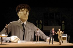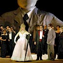 Saarbrücker Zeitung 21.4.2003 Kopfgeburten eines Dichter-Riesen Von Oliver Schwambach Saarbrücken. Vollendet vieles, anderes nur skizziert und noch ungeordnet: "Hoffmanns Erzählungen", Jacques Offenbachs (1819-1880) letztes und ambitioniertestes Werk, erweist sich seit seiner Uraufführung 1881 als Puzzle-Spiel für Bearbeiter, Dramaturgen und Regisseure. Den Originalplan dazu nahm der Operetten-König mit ins Grab. Zwischen Barbie und Dolly Buster Wie stellt man's da bloß an, durch die drei Kern-Akte der Oper, die für Dichter, Musikus und Hauptfigur Hoffmann stets mit Herzschmerz enden, einen reißfesten roten Faden zu weben? Die Schluss-Klammer des Librettos jedenfalls, dass nämlich Olympia, das kesse Püppchen, Bürgerstochter Antonia und Kurtisane Giulietta quasi nur drei Facetten von Hoffmanns einer Angebeteten Stella sind, wirkt da eher dünn. Regisseur Nicholas Broadhurst sieht das in seiner Saarbrücker Inszenierung genau so. Darum hat er die drei Rollen gar nicht erst einer Sopranistin allein zugeteilt, sondern drei verschiedenen. Und alle drei glänzen. Atombusig trippelt das von Spalanzani (bei Rupprecht Braun eher ein Salonlöwe denn ein Physiker) konstruierte Voll-Kunst-Weib Olympia auf die Bühne; irgendwas zwischen Barbie und Dolly Buster. Dessen Koloraturen jubelt Stefanie Krahnenfeld so glockenrein wie mühelos. Kein Wunder, dass Hoffmann betört ist. Doch bald gibt der Automat den Geist auf. Antonia, Hoffmanns zweite Herz-Dame, singt wie ein Engel. Bei Oxana Arkaevas dunkel timbrierten Sopran glüht wunderbare Leidenschaft. Aber Antonias Stimme ist auch ihr Verderben - jeder Ton zuviel kann die Schwindsüchtige das Leben kosten. Da nützen auch Papas Mahnungen nichts (Hiroshi Matsui mit weich strömendem Bass). Der finstere Miracle verführt Antonia mit der Aussicht auf Künstler-Ruhm zum eigenen Abgesang, dazu lässt er sogar die Stimme von Antonias toter Mutter (düster verlockend: Maria Pawlus) ertönen. Eher eisig agiert Naira Glountchadze als Profi-Verführerin Giulietta, dafür entfacht ihre Stimme feuriges Verlangen. Doch auch hier winkt kein Happy End: Die Kurtisane treibt Hoffmann in ein Duell mit Nebenbuhler Schlemil (Manfred Bertram). Vom Märchen-Zauber, der da üblicherweise gern bei "Hoffmanns Erzählungen" wuchert, nehmen Nicholas Broadhurst und sein Ausstatter Jon Morell zum Glück Abstand. Sie interessiert vielmehr Hoffmann, der Mensch, der Mann, der Künstler - und seine Unfähigkeit zu lieben. Ganz in unserer Zeit lebt dieser Hoffmann. Zwischen Bier und Zigarettendunst hockt er in der miefigen Kantine einer Provinzbühne. Nebenan singt Opern-Diva Stella (Eva Steffen). Doch Hoffmann kann sich nicht entscheiden, ob er nun sie lieben soll oder seine Kunst. Jon Morell schafft dafür Bühnen-Bilder, die sich einbrennen. Vergrößert ins Gigantische wird der Dichter selbst - als mechanischer Riese, der den ganzen Abend die Szenerie beherrscht - und sein Tisch zum Spielfeld der (Opern-)Figuren. Jene Welt, die Hoffmann zu kontrollieren glaubt. Wie bei so vielen Autoren aber entwickeln auch seine Geschöpfe ein Eigenleben. Broadhurst und Morrell öffnen dank der ungewöhnlichen Perspektive auch den Blick in Kopf und Seele Hoffmanns. Und man erkennt: Sein Unglück, seine Bindungsunfähigkeit - alles liegt bei ihm selbst begründet, weil er nicht bereit ist, sein (reales) Leben in die Hand zu nehmen. Dazu passt, dass Broadhurst gerade die Figuren fokusiert, die sich Hoffmann widersetzen. Wie die Muse etwa. Eigentlich nur ein etwas farbloser Begleiter des Dichters. Doch so wie Roswitha Müller sie mit geschmeidigem Mezzo singt, wird sie zur Frau aus Fleisch und Blut, zur verschmähten Geliebten des Dichters. Ein starker Auftritt! Was auch für Alan Cemore gilt. Als Lindorf, Coppelius, Docteur Miracle und Dapertutto baut Broadhurst ihn quer durch die Rollen zu Hoffmanns Gegenspieler auf. Diabolisches Funkeln legt Cemore in seinen eleganten Bariton. Das hat auch was vom Spiel zwischen Mephisto und Faust. Überhaupt scheint dieser grübelnde Intellektuelle Hoffmann ein Seelenverwandter Fausts. Wobei Gary Bennett aber nur die - freilich mit Bravour bewältigte - Schauspiel-Rolle blieb (der erkrankte Sänger muss vorerst seine Stimme schonen). Tenor-Kollege Keith Ikaia-Purdy lieh von der Bühnenseite aus seine Stimme. Was beileibe keine Notlösung war. Denn er ist ein ganz Großer seines Fachs. Elegant, druckvoll und von silbernem Glanz: eine wunderbare Stimme. Ein Seelenverwandter Fausts Nicht das letzte Bravo, das diesem Abend gebührt. Bernd Könnes - auch im ständigen Rollenwechsel von Andr&;s bis Frantz gefordert, bestach mit Buffo-Qualitäten. Und Orchester wie Chor (Leitung: Andrew Ollivant) hatten sich den donnerden Applaus gleichfalls verdient. Mit Michele Carulli am Pult glänzte das Staatsorchester: klug ausbalanciert das Klangbild, mit markanten Akzenten, forschem Puls und kapriziöser Heiterkeit, dort, wo es die Partitur vorschreibt - aber auch mit herrlich feingesponnenen Klängen. Weitere Termine: 23. und 26. April, Karten: (0681) 32204. |
