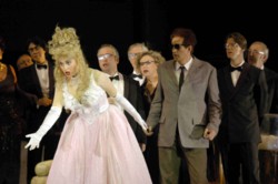 Der Regisseur ist gefragt, etwas darzustellen, das zugleich innen und außen stattfindet, in der erzählten und "erzählenden" Welt. Er muß ernste Inhalte schlüssig interpretieren und zugleich die ironischen Momente schwungvoll aber nicht geistlos darstellen. Nicholas Broadhorst gelingt gleichsam ein kleines Opernwunder, wenn er diesen Anspruch nicht nur erfüllt, sondern zudem eine Frische und Unverkrampftheit auf die Bühne zaubert, die ihresgleichen sucht.