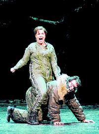 ![]() June 2004 OPERA REVIEW Wagner: Die Walküre Tacky wallpaper seems to be very much en vogue in Wagner opera at the moment, as do dank and dingy kitchens. First, there was Anna Viebrock's stage design for Jossi Wieler's and Sergio Morabito's superb "Siegfried" in the ground-breaking Stuttgart "Ring" a few years ago. That was Wagner as real kitchen-sink drama, complete with rising damp, mouldy tea-towels, and a grubby apron for Mime. Similar floral and paisley-patterned wallpaper put in a brief appearance in David Alden's wilful Munich Ring last year. And it even found its way into Bayreuth, in Claus Guth's striking "Hollaender". John Dew's new "Walküre" which opened at the Hessisches Staatstheater in Wiesbaden on Sunday uses garish wallpaper again, this time in faded 70s chic, all treacly browns and oranges, in Hunding's hut in Act I. And there's a drab kitchen complete with mildewed fridge and clogged-up extractor hood to boot. In fact, Dew and his stage designer, Peter Schulz, seem to have come up with very similar ideas to other recent Ring productions -- the paratrooping Valkyries of Juergen Flimm's Bayreuth, being aired for the last time this year; and the snow blizzards and army fatigues of Robert Carsen's recently completed Cologne cycle. Like Flimm, Dew casts Wotan (at least in his scene with Fricka) as a powerful corporate boss, complete with expensive suit and sleek chrome and black leather office. And he also gives a nod in the direction of Carsen's view of the Ring as an environmental drama about mankind's squandering of the earth's resources and the degradation of the planet into a huge ecological waste bin. That is not to suggest that Dew is merely a copycat, magpie collector of other people's ideas. The New York-born director, who already staged a complete cycle in Krefeld/Moenchengladbach in 1981-1985, offers plenty of new takes and perceptive insights of his own in his new Ring-in-the-making in Wiesbaden. In "Rheingold", Loge is Einstein and Valhalla a nuclear power plant. Dew takes up the theme again in "Walküre", when he casts Siegmund as an anti-nuclear demonstrator complete with straggly hippy hair and CND T-shirt on the run from the riot police, of which Hunding is a member. No doubt the nuclear motif will be continued and developed in the subsequent parts ("Siegfried is due in November and "Götterdämmerung" some time next year). As for the Ride of the Valkyries, there is no Ride at all. The action takes place in a vast aircraft hangar in which some of the Valkyries are wartime air-traffic controllers calling out orders through radio microphones or sorting through the files of the names of the dead warriors, while others stride in, in full jumpsuits, flinging down their report sheets before cracking open a bottle of beer. The scene generated much tutting and shaking of heads among the first-night audience and was undoubtedly the main reason for the booing when the production team took their bows at the end of the evening. But at least it steered clear of some of the unintentionally comic corpse-lugging frequently seen elsewhere. And there was some gentle tongue-in-cheek self-irony, too, as some of the Valkyries camped it up in front of the microphones. Perhaps the main strength of Dew's new "Walküre" lies in his portrayal of the different dysfunctional relationships of the main characters. Ute Doering is a nimble and light-voiced Sieglinde, who dares once or twice to just about hold the gaze of Christoph Stephinger's gruff bulldog of a Hunding in Act I, but is suitably harassed and terror-stricken during the lovers' subsequent flight. Gabriela Kuenzler was an admirable Fricka, even if her mezzo did not always sit comfortably as estranged husband and wife wrestled over the remains of their loveless marriage. The pairing of Sieglinde and Siegmund was weakened by the casting of Alfons Eberz as Siegmund. Eberz appears to believe he's already the bumbling and oafish Siegfried rather that the fate-stricken Siegmund burning with incestuous passion for his twin sister. His acting is as one-dimensional as his singing, and he spends much of the time stumbling or sitting around on stage, open-mouthed and flummoxed as to what's going on around him. His diction was frequently unclear, his tone often inflexible. By contrast, Wotan and Brünnhilde were the stars of the show, carefully drawn and lovingly played by Ralf Lukas and Barbara Schneider-Hofstetter. Father and daughter are inseparable from the very beginning, Wotan pulling all the strings, conjuring up Hunding's hut with a wave of his hand, and both watching conspiratorily from behind the trunk of the Weltesche as the lovers' drama unfolds. They horse around like big kids at the beginning of in Act II. Brünnhilde hangs on Wotan's every word, her face beaming with love and admiration. And that devotion is returned by Wotan. Lukas and Schneider-Hofstetter are so completely absorbed and absorbing that they have no need for stage props or scenery in their final farewell scene, which Dew reduces to a dark stage, empty except for the even darker shadow of the Weltesche looming in the background. Schneider-Hofstetter was making her role debut and what a warm, humane soprano she has, full and firm in tone, but with lots of different shading. Let's hope she'll also be the Brünnhilde in the next two parts of Dew's Ring. Lukas, too, went from strength to strength, convincingly catching the god's plight, arrogantly swaggering on the one hand, weak and fumbling on the other, ever flexible, always pleasing in tone. Finally, in the pit, Wiesbaden's departing general music director, Toshiyuki Kamioka, was a phenomenon. Small and wiry, he noisily jumped up and down, huffing and puffing for all his worth, and the Hessisches Staatsorchester played as if its life depended on it, even if some of the edges were a little rough. Simon Morgan Premiere on June 27, 2004 |