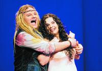 Blick zurück ins Hippie-Zeitalter: Alfons Eberz als Siegfried und Barbara Schneider-Hofstetter als Brünnhilde in John Dews Wiesbadener "Siegfried". Foto: Martin Kaufhold Von Richard Hörnicke Nicht enden wollender Jubel im Großen Haus des Wiesbadener Staatstheaters für die Premiere von Wagners "Siegfried", die zumindest im musikalischen Bereich Bayreuther Maßstäbe erfüllt. Ein Abend der Debüts - der neue Generalmusikdirektor Marc Piollet zum ersten Mal in Wagners "Ring" am Pult, Alfons Eberz in der Partie des Titelhelden, Gilles Ragon, gefeierte Platée in Rameaus gleichnamiger Oper, auf dem Weg vom leichteren Genre in das des Charaktertenors. Zu den Debütanten traten Künstler, die sich bereits in "Rheingold" und "Walküre" bewährten. Schon bei Verdis "Rigoletto" fesselten Nervigkeit und Energie, mit der Piollet der Partitur lebendigen Atem einhauchte, ihr ein sensibles und zugleich vitales Klangspektrum verlieh. Mit dem souveränen Dirigat des "Siegfried" spornte er das Orchester zu Höchstleistungen an, setzte die Linie des einfühlsamen Hineinhorchens und Ausformens musikalischer Strukturen fort, bruchlos und fesselnd wurde die "unendliche Melodie" des "Siegfried" zum exquisiten Hörerlebnis. Man sieht nun der Übernahme des Dirigats der bisherigen beiden Teile der Tetralogie mit besonderer Spannung entgegen. Alfons Eberz war den Anforderungen der kräftezehrenden Partie des Siegfried bewundernswert gewachsen. Mit seiner ebenmäßigen und nie forcierten Stimmführung, dem metallischen Strahl der Spitzentöne ist er eine Idealbesetzung. Erstaunlich, welches packende Format Gilles Ragon der Rolle des Mime verleiht, wie er diesen bösen, "wissenden Zwerg" stimmlich und darstellerisch charakterisiert, auch das eine Glanzleistung. John Dew bleibt in seiner Inszenierung im Bühnenbild von Peter Schulz und in den Kostümen von José-Manuel Vazquez dem mit "Rheingold" und "Walküre" begonnenen und schon erprobten Konzept treu. Er holt das Geschehen in überzeugender Personenführung in die Zeit der sechziger Jahre zurück. Siegfried ist mit lang wallendem Haar und Stirnband ein Blumenkind mit Revoluzzerneigung, Wotan versucht in gutbürgerlicher Kleidung seine schwindende Macht zu retten, Mime bewegt sich in seiner von einem Schrebergarten umgebenen Schmiedewerkstatt zwischen Kühlschrank und Schmelzofen. Der "Drache" durchbricht in Gestalt eines Panzers eine Mauer (die DDR lässt grüßen), vor der sich Alberich mit Bierflasche als heruntergekommener Penner lümmelt. Man sieht, es geht sehr menschlich und manchmal etwas Historie-schwanger in dieser Regieführung zu. Den Mittelpunkt der Szene beherrscht die Weltesche. Nur in der letzten Szene muss sie einem lichtblauen Rundhorizont weichen, in dem sich Brünnhilde und Siegfried ihrer Liebe hingeben. Barbara Schneider-Hofstetter als Brünnhilde, nach dem Erwachen allzu lange dem Boden verhaftet, überzeugt mit leuchtend klarem und sich dramatisch weitendem Sopran. Das Schlussduett mit Eberz wird zu einem musikalischen Höhepunkt. Ralf Lukas versieht die Partie des Wanderers mit schlackenlos strömendem, markantem Bariton, Carlo Hartmann gibt dem Alberich signifikantes Profil, Marina Prudenskaja leiht in füllig aufgeblähter Kostümierung der Erda ihren warmen, ausdrucksvollen Alt. Ein munterer, silbrig singender Waldvogel war Tora Einarsdottir. In den Beifall mischten sich beim Erscheinen des Regieteams einige Buhrufe. |