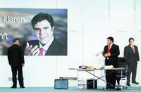 Von Macht und Masken Von Thomas Tillmann Es dauerte nicht lange, bis die Schimpferei im dritten Rang begann, die sich zu den Ablauf der Premiere von Un ballo in maschera störenden Wortgefechten und Rangeleien ausweitete. Sicher, Teile des Publikums sind inzwischen Inszenierungen leid, in denen sie auf der Bühne das präsentiert bekommen, was sie in ihrem täglichen Leben vorfinden, in denen ihnen die Flucht in wunderbar weit entfernte Zeiten und an ebensolche Orte verweigert wird, keine atmosphärisch beleuchteten Bühnenbilder und glanzvolle Kostüme das Auge verweilen lassen und man sich ganz dem Festival der schönen Stimmen hingeben kann, sondern die altbekannten Stücke auf ihre Aussage- und Sprengkraft für unsere Zeit hin befragt werden. Beide Ansätze und Bedürfnisse haben ihre Berechtigung. Opern sind nicht dazu da, als Folie für Profilneurosen von schlecht vorbereiteten Regiedilettanten ausgenutzt zu werden, die den ihnen anvertrauten Werken letztlich misstrauen und lieber eigene Geschichten erzählen wollen, dafür aber keine Geldgeber finden, aber Opern sind eben auch nicht allein der Kulinarik preiszugebende Bühnenwerke, die den Sehgewohnheiten einer konservativen und beschwörend nach kaum zu definierender Werktreue schreienden Zuschauerschaft unterworfen sind, die sich im ersten Teil des Abends so lautstark zu Wort meldete und dann mehr und mehr verstummte. Claus Guth, der 2003 Der Fliegende Holländer in Bayreuth inszenierte und im kommenden Jahr mit seiner Sicht von Mozarts Le nozze di Figaro die Salzburger Festspiele eröffnen wird, lässt den Zuschauer einen Blick hinter die Kulissen der Politik werfen (in seiner Macbeth-Inszenierung im Mai hatte Calixto Bieito das Geschehen in die Bankenwelt verlegt): Wir begegnen Riccardo in seinem Büro, erschöpft von einem anstrengenden Wahlkampf, den er als Spitzenkandidat einer Partei bestreitet, die sich "Für einen besseren Weg in die Zukunft" einsetzt, wie das riesige Plakat zeigt, das den Raum dominiert und natürlich mehr als eine Anspielung ist auf die zurückliegenden Wochen und Monate in diesem Land (ein interessanter Zufall, dass in dem Moment, in dem die Premiere in Frankfurt begann, die Wahllokale in Dresden schlossen). Auf der linken Seite drängen Mitarbeiter und Journalisten auf Einlass, sie werden aber von Riccardos Wahlkampfmanagerin Oscar zurückgehalten (die Anlage als Hosenrolle wird hier aufgegeben, was wohl doch zu verschmerzen ist). Riccardo ist ein Vollblutpolitiker, der auch äußerlich durchaus ein wenig an den amtierenden Kanzler erinnert, wie dieser eine rote Krawatte trägt (die Verschwörer dagegen haben gelbe!), sofort nach dem Aufwachen wählerwirksame Parolen aufzusagen weiß, was besser zu Sommas Auftrittsworten passt, als mancher wahrhaben will, und die typischen Siegerposen souverän beherrscht, ein Meister der Verstellung eben, aber auch ein Einzelgänger, der sich danach sehnt, all die Masken abzulegen und wieder Authentizität zu spüren. Im zweiten Bild trifft er auf dem Flur neben seinem Büro - der Wechsel der eindrucksvollen Bühnenbilder von Christoph Sehl, die ich freilich von meinem sichtbehinderten Platz im Seitenrang nicht vollständig einsehen konnte, wird mit Hilfe der Drehbühne problemlos bewältigt - eine geheimnisvolle Putzfrau, die ihren Lappen in einem Eimer voller Blut auswäscht. Putzfrauen als Prophetinnen, das ist so neu nicht (man erinnert sich an Robert Carsens spannenden Macbeth an der Kölner Oper), und es will zu dem ja sehr auf Realismus hin angelegten Ansatz auch nicht wirklich passen, sondern bleibt ein Fremdkörper, auch wenn die Szene an sich gut funktioniert: Es wird Karneval gefeiert auf den Gängen der Wahlkampfzentrale, aber spätestens als Riccardo neben dem Blutfleck in Ulricas mit Scheuermittel skizzierten magischen Kreis am Boden liegt, ahnt seine Entourage, dass hier aus Spaß Ernst geworden ist, da hilft auch das anschließende, flugs inszenierte Bad in der Menge nichts, die den Spitzenpolitiker inzwischen erkannt hat. In seinem Büro haben unterdessen Zerstörung und Winter Einzug gehalten (ein Symbol für den inneren Abschied von dem öffentlichen Leben und den Masken, die er so leid ist?), was Amelia und Riccardo gegen Ende des Duetts nicht davon abhält, sich mehr und mehr zu entkleiden, sich nebeneinander in den Schnee zu werfen und eine Hochzeit zu improvisieren, die eine beklemmende Parodie erfährt, wenn die Verschwörer später Amelia Riccardos rote Krawatte umhängen, ihr einen Papierkorb als Zylinder aufdrücken, Renato den Schleier aufsetzen und ihm die Lippen nachziehen.