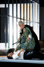 Gerhard Schroeder Stars in Verdi's `A Masked Ball' in Frankfurt Oct. 4 (Bloomberg) -- The chancellor dozes on a sofa. He wears his trademark red tie; above him is a giant election poster. Aides wait in an anteroom. Awaking with a start, he leaps to his feet and launches into a victory speech, rehearsing to the empty room, hands clasped in triumph above his head. The Frankfurt opening-night audience howls with laughter. Verdi's ``Un Ballo in Maschera'' (A Masked Ball) isn't really a comedy. But in the current climate of economic and political uncertainty, Europe's banking capital needs all the humor it can get. And Claus Guth's new staging of this operatic thriller for the Frankfurt Opera provides plenty. This is an opera about a blinkered politician who refuses to see that his leadership is on the brink of collapse. Surrounded by enemies and intrigues, he continues to utter the empty rhetoric of triumph and supremacy. It has to end badly. So Guth simply holds up the mirror to today's Germany. There is ample historical precedent for what Guth does. Verdi's tale of illicit love and assassination was so familiar to the censors of his day that they banned it. Only when the composer grudgingly altered country, rank of ruler, century and murder weapon did they consider it suitable for local viewers. Guth returns to the spirit of the 1859 original and offers scenes that everybody will recognize. Blood at the Watercooler Riccardo is a chancellor on the way out, his spacious office backed by flimsy particle-board walls. The page Oscar is a blonde secretary in high heels, the fortune-teller Ulrica a cleaning lady whom we discover mopping up a pool of blood near the watercooler. Renato and Amelia live in a half-finished housing estate, IKEA domestic perfection masking marital strife. Behind the plastic paint sheets backing Riccardo's office is a netherworld of construction, collapse and sordid crime. Like Verdi and his numerous librettists, Guth shows us a glossy political facade and the depths of violence, ambition, passion and tragedy behind the image and spin. It is utterly plausible. Amelia is Riccardo's Monica Lewinsky. Though he never consummates the union, his indiscretion destroys him. Guth looks deeper, examining the function of the masked ball of the title in contemporary translation. He shows us the southern German carnival tradition, with its expression of covert urges, and the conservative world of opera itself, baroque costumes and powdered wigs to act out the nasty things that really happen just a few doors down. Warbling Gerhard Conductor Paolo Carignani spends the first half of the evening attempting to set the land speed record for Verdi, whipping his forces along at such a pace that most of the score passes in a blur. He calms down after the intermission, giving the singers more space to breath and replacing velocity with crashing force. It is never less than formidable. The singing is consistently strong. Montevideo-born tenor Carlo Ventre as Riccardo manages to look and move just like Gerhard Schroeder while singing with energy and robust musicality. Marco Vratogna brings sinister shading and complexity to the part of murderous Renato, while Silvana Dussmann makes a warm, dramatic Amelia. Anna Ryberg's Oscar is witty and agile, Ildiko Szonyi's Ulrica guttural and exotic. In all, a cheerfully provocative and wonderfully well-made season-opener for one of Germany's leading opera houses. ``Un Ballo in Maschera'' continues in repertory through Oct. 29, and returns in January and February 2006. |