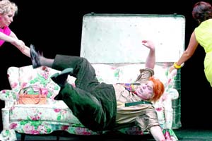 Zurück zur Musik, die sich beinahe nach impressionistischer Manier in viele kurze und fein durchgearbeitete Figuren zerlegt. Nicht mehr die große Geste steht im Vordergrund, sondern die musikalische Kommentierung und Ergänzung jeder einzelnen Geste und nahezu jeden Wortes. So folgt die Musik nicht großen Linien sondern schreitet von Augenblick zu Augenblick fort, immer die jeweilige Befindlichkeit der handelnden Personen widerspiegelnd und die Situation markierend. Wie bereits ausgeführt, verweist diese Struktur bereits auf die Musik von Richard Strauss, so z.B. auf den Rosenkavalier. Es versteht sich von selbst, dass diese Art von Musik wesentlich höhere Anforderungen an das Zusammenspiel von Bühnenpersonal und Orchester stellt als die "klassische" Oper, gilt es hier doch, auf den Moment genau zu reagieren. Das Orchester unter der Leitung von Timor Oliver Chadik löste diese Aufgabe mit Bravour und zeigte damit wieder einmal den Reifegrad, den es im Laufe der Jahre unter Marc Albrecht und Stefan Blunier erreicht hat. Dem entsprechen die Leistungen des singenden Personals. Allen voran ist natürlich Carlo Hartmann als Falstaff zu nennen, der mit dieser Figur seine Traumrolle gefunden hat und restlos in ihr aufgeht. Laut seinen eigenen Aussagen muss man schon einmal über 100 Kilo auf die Waage gebracht haben, um Falstaff spielen zu können, und obwohl sein Kostüm offensichtlich ausgestopft ist, ist ihm durchaus zuzutrauen, dass er es schon einmal auf dieses Gewicht gebracht hat. Seine Stimme und sein Leib dominieren die gesamte Bühne, und die ganze Konstellation dieses Librettos macht es anderen schwer, neben ihm zu bestehen. Das schafft jedoch Werner Volker Meyer, der Ford, dem Ehemann von Alice, stimmlich wie darstellerisch ein ausgeprägtes Profil verleiht, das dem Zuschauer im Gedächtnis verbleibt. Diese Leistung ist umso mehr zu würdigen, als Ford eigentlich von der Handlung her keine tragende Figur darstellt und mehr oder minder als "Brandbeschleuniger" für Falstaffs Entsorgung via Wäschetruhe dient. Andreas Wagner spielt und singt den verliebten Verehrer Nanettas im Rahmen, den diese Rolle erlaubt, mit Souveränität, die anderen Nebenrollen - Saufkumpane und der biedere Ehekandidat für Nanetta - sind ebenfalls gut besetzt. Bei den weiblichen Rollen überzeugt vor allem Elisabeth Hornung mit ihrem tiefen Alt und ihrem schauspielerischen Witz. Herrlich ihr "Reverenza" bei den verschiedenen Treffen mit Falstaff. Anja Vincken als quirlige und fintenreiche Alice steht ihr in nichts nach. Susanne Serfling gibt eine frische Nanetta im Pettycoat der fünfziger Jahre, und Yannchen Hoffmann rundet das Gruppenbild der Damen gekonnt mit der Rolle der Meg Page ab. John Dew ist mit "Falstaff" ein temporeicher und witziger Saisonstart gelungen, und seine Einladung an Carlo Hartmann, die Hauptrolle zu übernehmen, hat sich als goldrichtig erwiesen. Frank Raudszus |