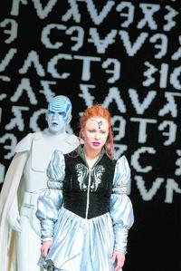 Iphigenie im Krieg der Sterne Von Rudolf Jöckle Die Darmstädter waren schlauer als seinerzeit Gary Bertini, der sich bei seinem Frankfurt-Debüt mit einer langen Doppelpremiere vorstellte. Nun verteilte man im Kleinen Haus – gerade nach der Restaurierung fertig geworden – die Opern auf zwei Abende. Das kam nicht nur der Konzentrationsfähigkeit des Publikums zugute, sondern auch der Elastizität des Orchesters. Regisseur Philipp Kochheim aber überrumpelte mit einem Zugang, der diese aufgeklärten antiken Mythen jenseits aller edlen Größe in die Sciene-Fiction-Bilder unserer Tage übersetzte: Iphigenie in den „Star-Wars"-Welten mit wörtlichen Zitaten, also mit Jedi-Rittern, den „Priestern" in den tiefen Gewändern, den Laser-Schwertern. Und sogar das fliegende Zottelwesen Chewbacca treibt sich als Statist herum (Kostüme: José Manuel Vázquez). Die Zukunftsperspektive der Fantasy als Träger des Mythos „aus uralten Zeiten" – das fügt sich mit einer faszinierenden, gar verführerischen Schlüssigkeit. So wird denn im Bühnenbild von Thomas Gruber, das geschickt den Raum konzentriert und dennoch genügend Auftrittswege findet (eine Art Raumschiff also), mit der Macht vertrauter Bilder eine meist höchst spannende Geschichte erzählt um den Konflikt zwischen dem Herrscher-Vater Agamemnon, übrigens in überraschend „barockem" Gestus, und seiner bisweilen nervig pubertär agierenden Tochter, die im Augenblick tödlicher Bedrohung indes zu sich selbst findet. Gespielt wurde die zweite Fassung mit dem Erscheinen der Göttin Diana, die als große, flimmernde Maske von oben eingreift. Stimme und Musik werden dazu von Band eingespielt, was von einer alten Aufnahme stammen könnte. Verblüffend dann das finale Quartett (die Schlusschöre entfallen), das wie eine gesprungene Platte die gleiche Verszeile wiederholt: Noch ist nichts zu Ende, und im Hintergrund erscheint „die Macht des Bösen". Eben dieses Quartett aber – Andrea Bogner als Iphigenie mit jungem, schlankem Sopran, Tito You als sonorer, ausdruckstiefer Agamemnon, Katrin Gerstenberger als leidend-trinkende Muter Klytämnestra, Mark Adler als Achill – traf angenehm das gefordert Deklamatorische. Und eben diese „Macht des Bösen", deren Maske dann Thoas trägt, entscheidet über das verblüffende Ende der „Iphigenie in Tauris". Großartig hier der Wirbel des Sturms im 1. Akt, vehementer Ausdruck der Qualen Iphigenies. Die schön klassischen Mitschwestern im elenden Stangen-Holz-Ambiente – von der Regie durchaus realistisch in Handlung und Bewegung gezeichnet, wie ohnehin die Deutung der Charaktere eine der Stärken Philipp Kochheims ist – müssen sich mit Gewehren vor den geilen thrakischen Horden schützen, die entsprechend wild und handgreiflich auftreten, wie der ganze 1. Akt von einem einzigen mitreißenden Impuls vorangetrieben war. Allerdings verloren die späteren Szenen dieses Feuer, sie taten sich schwer mit den steten Selbstanklagen Iphigenies, Orests und der Opferbereitschaft des Pylades. Bis zum unerwarteten Finale: Da wurde Thoas nach dem Libretto im Kampf nur scheinbar getötet. Plötzlich steht er auf, sticht Orest und Pylades nieder. Und auch die anwesenden griechischen Truppen stört das nicht, wenn der Skythenkönig die kraftlos gewordene Iphigenie an seine Seite zieht wie weiland König Gunter die Brünnhilde. Die Mächte haben sich arrangiert. Gott ist tot. Herausragend im Tauris-Ensemble Anja Vickers, die mit stimmlicher Wärme die Not Iphigenies vermittelt, und Peter Paul als Orest mit kernigem, doch wandlungsfähigen Bariton. Bestechend jedoch an beiden Abenden Stefan Blunier als musikalischer Leiter, der das wache (und kleine) Orchester an Erkenntnisse historischer Praxis und damit zu rhythmischer Elastizität wie zu klanglicher Delikatesse führte. |
