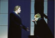 Das Rheingold secondo WilsonLe quattro giornate sono dunque cominciate. È noto che Jean-Pierre Brosmann ha scelto Der Ring des Nibelungen per il suo addio alla direzione dello Châtelet. Che dal prossimo anno passa ufficialmente nelle mani di Jean-Luc Choplin. L'intera tetralogia nello spazio di una sola stagione? È questo il progetto di Brosmann che è andato a pescare un collaboratore di sempre: Robert Wilson. Sarebbe già un evento, senza che lo Châtelet avesse in più avuto l'audacia di avvalersi del sostegno dell'Orchestre de Paris, compagine non tradizionalmente legata al repertorio wagneriano. Una miscela inaspettata che fomenta interesse e curiosità? A giudicare dal botteghino, l'impresa è riuscita. E artisticamente? Qual è l'esito di queste due ore e mezza eseguite tutto d'un fiato, senza intervallo? Wilson opta per un'estetica misura, controllata. Fin dalle prime immagini, è chiaro quale sia il suo modello ispiratore: un teatro giapponese stilizzato, epurato dall'occhio dell'occidentale che tenta un sincretismo tra la tradizione Nô e i film di Kung Fu (con le scene di duello passate al rallenti, però). Tutto è lento, soppesato tanto da finire per trasformare questo Oro del Reno in un rituale fuori dal tempo. E certo non è solo la regia a determinare quest'atmosfera: ci mettono lo zampino pure i costumi (Frida Parmeggiani) e le luci (Kenneth L. Schutz), entrambi posti sotto la supervisione di Wilson. Lo spettatore ritrova, una dopo l'altra, scene che alla lunga finiscono per apparire come ripetitive. In ogni caso, l'estetica di Wilson si rivela contagiosa. Pure l'esecuzione musicale si adatta al diapason del regista americano. Inutile attendersi esplosioni liriche o slanci orchestrali. D'altra parte, la visione controllata "alla giapponese" pare perfettamente andare a braccetto con quello che il direttore d'orchestra aveva dichiarato alla vigilia: Eschenbach vede nel Ring "un'atmosfera da musica da camera". E non si tratta di una frase ad effetto, a giudicare dall'esito. L'Orchestre de Paris si rivela la vera (felicissima) sorpresa della serata. Il cast fa il resto. Spiccano Mihoko Fujimura (Fricka) e Qiu Lin Zhang (Erda). Prodigiosamente sorprendente Sergei Leiferkus. Non al massimo delle sue possibilità è, invece, sembrato Jukka Rasilainen (Wotan). Un inizio che dà voglia di vedere il resto. Alessandro Di Profio |