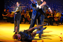 Bollywood in Klammern VON STEFAN SCHICKHAUS Man nannte ihn Ciccio, Dickerchen. Der neapolitanische Komponist Gian Francesco de Majo hatte es schwer, trotz bester Kontakte. In Neapel ist die Konkurrenz mächtig, im feuchten Ausland die Gesundheit sein Feind. Er stirbt 1770 mit 38 Jahren an Tuberkulose - einige Monate zuvor hatte der 14-jährige Mozart seiner Musik ein "bellissima" attestiert. Das Nationaltheater Mannheim hat sich dieser Musik erinnert, denn in den 1760ern hatte de Majo zwei Opern für den Kurfürsten komponiert. Huldigungsopern natürlich, und als eine solche wurde der 1766 uraufgeführte "Alessandro" jetzt inszeniert von Günter Krämer, der den in Klammern gesetzten Ortszusatz mit Genuss betonte. "Alessandro (nell'Indie)": Eine schrille Revue, die das Publikum zu heftigen, meist frenetisch positiven Reaktionen animierte. Die Huldigung dachte sich Krämer so: Die Frau des Kurfürsten veranstaltet für ihren Gatten ein Fest zum Modethema Bollywood. Im Rahmen des Festes spielen die Protagonisten die "Alessandro"- Oper, das Orchester sitzt als Showband auf der Glitzerbühne (und spielt unter Tito Ceccherini tadellos). Stets in der Mitte: Ramesh Shotham, Tablas, und Yogendra, Sitar. Gegen Ende wird Rio Reisers "Bye-bye Junimond" gesungen, begleitet von indischen Instrumenten und Hammerklavier. Es gibt viel Grund zur Freude an diesem Abend: Über den Indien-Kitsch, über Krämers Klischee-Krieger Alexander, über Demontagen von Koloraturarien, über jenen prächtigen deutschen Text, der für den Regisseur überhaupt der Grund war, "weshalb ich die Regie übernommen habe: diese alberne Poesie". De Majos Oper aber verschwindet. Ob das schlimm ist, sei dahingestellt. Nur bei wenigen Nummern dieser ohne Rezitative überlieferten Hofoper zog Krämer sich zurück, meist gab seine Regie der Musik Kontra. Jede filigrane, edle Arie muss verwelken, wenn parallel dazu eine Darstellerin sich ein Fußbad einlässt, weil sie beim Ausdruckstanz in einen Dorn getreten ist, die Koloratur der Sängerin geht über in ein Heulen. Gesungen wird stark, auch wenn der Bass Lars Mollers (Alexander) nicht gut zentriert sitzt. Ihm überlegen zeigen sich Cornelia Ptassek als Cleofide und Marie-Belle Sandis als Porus, die mit enormer physischer Kondition gen Alexander marschierte. Die Protagonisten waren gedoppelt und getripelt durch Schauspieler und Tänzer, was für helle Bühnenaufregung sorgte. Zu viel für Puristen. Nicht zu viel aber für eine Oper wie "Alessandro", in Klammern: In Indien. [ document info ] Dokument erstellt am 08.06.2008 um 16:32:01 Uhr Letzte Änderung am 09.06.2008 um 12:37:48 Uhr Erscheinungsdatum 09.06.2008 |