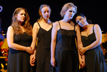 Musiktheater Von unserem Redaktionsmitglied Stefan M. DettlingerFünfzehn Minuten sind eine lange Zeit. Fünfzehn Minuten rauschender Beifall, gesprenkelt von heftigen Buh- und Bravorufen, sind eine halbe Ewigkeit. Und ungeheuerlich endlos scheint es, wenn all dies der Aufführung einer so genannten "Mannheimer Hofoper" gilt, also einem Werk, das zu Kurfürst Carl Theodors Zeiten in Mannheim uraufgeführt wurde (erinnert sei nur an den trostlosen "Catone in Utica" vom vergangenen Jahr). Diesmal war "Alessandro" dran - eine unbekannte Seria-Oper. Von Gian Francesco de Majo - einem unbekannten Komponisten. Der Regisseur dieses Abends indes ist kein Unbekannter, und das ist gut so. Denn der schalkhafte Günter Krämer hat mit diesem Werk einfach Theater gemacht, ein ziemlich verrücktes und gutes sogar, ganz nach dem Motto: Wenn wir uns schon mit der Mannheimer Hofoper herumplagen müssen, dann soll es wenigstens Spaß machen. Es hat Spaß gemacht. Weitgehend. Jeder Mensch ist ein Inder Alles fängt damit an, dass wir zu Indern gemacht werden. Zahllose - echte und scheinbare - Inderinnen tragen zu den Tabla- und Sithar-Klängen (Yogendra, Ramesh Shotham) ihre freien Bäuche durch die Besucherreihen und versehen die Zuschauer mit einem roten Bindi auf der Stirn. Die Ästhetik ist unmissverständlich. Bombay und Bollywood lassen grüßen, schließlich geht es in dieser Fragment-Oper auch um Alexanders des Großen Indienfeldzug gegen Porus. Intrigen, Mordversuche, Liebschaften und Eifersüchteleien stehen im Zentrum der Handlung, und wenn man dem Abend eines vorwerfen will, dann, dass Musik und Handlung weitgehend hinter das Ornament und die Farbe zurücktreten. Wie überhaupt der Seria-Charakter verloren geht. Fast minütlich gäbe es etwas zu lachen, die Tragik und Dramatik gehört nicht dem Werk, sondern der Oper als Kunstform. Sie nämlich denkt in diesen farbenfrohen Verkleidungen (Falk Bauer), in den indischen Klischee-Dekors (Jürgen Bäckmann)und zirkushaften Zoten, in diesem buntscheckigen Blödelkosmos über sich selbst nach. Hinter der frohlockenden Fassade des Witzes lauern eigentlich Fragen wie diese: Was will die Oper im Zeitalter des medialen Unernstes? Inwieweit sind wir in unserer Quatschgesellschaft überhaupt noch zu authentischen Gefühlen in der Lage? Die ironische Antwort gibt immer wieder die Schauspielerin Traute Hoess ("Sonnenallee"), unter anderem ein Double von Cornelia Ptassek als Cleofide, indem sie Texte der Sindelfinger Autorin Friederike Roth rezitiert: "Ich liebe die Oper", heißt es dort oftmals über das Musiktheater, in dem "der Billigramschkelch für zweifuffzich" zum Heiligen Gral werde. Im Grunde ist diese Affirmation wie ein Trojanisches Pferd: Aus ihrem Bauch heraus kullern Spott und Hohn für die lächerliche Kunstform. Im optische Rausch Und "Alessandro"? Der wird in diesem optischen Rausch halt auch gespielt, eher beiläufig zwar, aber das scheint - nach einmaligem Hören - nicht allzu tragisch. Die Rezitativ-Musik ist ohnehin verschollen. Die Texte werden von Schauspielern gesprochen. Und die Arien sind zwar hübsch, aber in nur wenigen Ausnahmen mehr als das, etwa wenn Marie-Belle Sandis uns als Porus mit dem kriegerischen Allegro "Destrier, che all'armi usato" samt marschierendem Inderinnen-Chor (unser großes Bild) glasklare Koloraturen schenkt - einer der starken vokalen und musikalischen Momente. Auch Cornelia Ptassek als Cleofide lässt natürlich aufhorchen. In ihrer Treue-Arie "Digli ch'io son fedele ..." gibt sie einmal mehr eine Kostprobe ihrer sehr charakteristischen Phrasierungstechnik, mit der sie die Töne elastisch legatissimo aneinanderreiht, als fielen Tropfen reinen Parfums ins heilignüchterne Wasser. Iris Kupkes Erissena beeindruckt ebenfalls, mit einer bestens intonierten Sprechstimme genauso wie durch ihren Gesang, etwa in der Koloratur-Arie "Di rendermi la calma prometti", die sie leicht und intonationssicher mit heller Trauer versieht. In dieser Phase des Abends legen alle Sängerinnen ihre indischen Klamotten ab und stehen im schwarzen Trägerkleid nebeneinander (kleines Bild links), auch Katharina Göres, die als Erissenas Geliebter Gandartes mit der elegant gesungenen Es-Dur-Arie "Mio ben, riccordati" überzeugen kann. Etwas unglücklich ist nur der Alexander besetzt. Lars Møller agiert überzeugend, bleibt stimmlich aber etwas blass, was von seinem Schauspieler-Double Daniel Schüßler mit aggressivem Sado-Maso-Gebaren aufgefangen wird. Das Nationaltheater-Orchester spielt - erst in hellen Dinner-Jackets, dann in T-Shirts - auf der Bühne und wird von Tito Ceccherini geleitet. Der Klang ist solide, so etwas wie der Fels in der verrückt-genialischen Brandung dieses tollkühnen Abenteuers. Oper? Offenbar! |