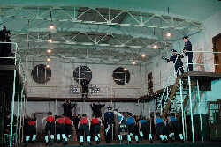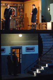 Ursprünglich ist diese starke Geschichte im Kontext der aufgeklärten Freiheitsrevolutionen des 18. Jahrhunderts angesiedelt und spielt auf einem englischen Kriegsschiff, auf welchem noch absolutistische Regeln herrschen. Herman Melville, schrieb diese Novelle als sein letztes literarisches Werk im Geist eines tiefsten Humanismus. In der Frankfurter Inszenierung ist die Handlung aber ins 20. Jahrhundert und in eine Kadettenanstalt verlegt worden. Die Mechanismen der Entwürdigung und Unterdrückung sind hier nicht mehr Ausdruck politischer Verhältnisse, sondern zwangsläufige Folgen der herrschenden Befehls- und Gehorsamsstrukturen. Und es zeigt sich, dass beide Systeme sich bis aufs Haar gleichen. Militärische Zucht, Entindividualisierung des Einzelnen und unterdrückte Sexualität sind die bestimmenden Koordinaten dieser reinen Männergesellschaft. Offizielle Härte und klare Feinbilder bestimmen hier den Alltag. Das Weiche, Güte und menschliche Zuwendung, haben ihren Platz nur in den Kajüten unter Deck. Die Offiziere sind Funktionäre des Systems, auch der Kapitän Vere, an sich ein Zweifler, zollt dem System seinen Tribut. Claggart, der diabolische Fixpunkt des Geschehens, wirkt wie der zynische Normalfall.