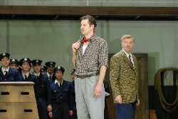 Diese Neuformation der Oper geht in der Inszenierung des britischen Regisseurs Richard Jones vollkommen auf, und zwar in einer außergewöhnlich packenden und berührenden Weise. Bühnenbild ( drei seitlich verschiebbare Räume) und Regie ermöglichen einen Bühnennaturalismus von nahezu cinematografischer Genauigkeit. Die Präzision der Personenführung ist nicht zu übertreffen und alle Akteure setzen dies auch in faszinierende Rollenrealisation um. Drei exzellente Sänger stehen für die Hauptrollen zur Verfügung. Clive Bayley spielt den Claggart überzeugend als Inkarnation der Banalität des Bösen, ein zweiter Jago gleichsam. Peter Mattei gibt den Billy Budd auf anrührende Weise redlich und wahrhaftig. Auch John Mark Aisnley zeigt als Vere das überzeugende Charakterportrait eines zwischen Menschlichkeit und Pflichtgefühl schwankenden Mannes. Einzig die Selbstabsolution im Schlussbild wirkt vielleicht allzu pathetisch, was aber der Anlage der Oper geschuldet ist. Aus dem Ensemble ragt Carlos Krauses Verkörperung des alten Matrosen Dansker heraus. In dieser Inszenierung gibt es tatsächlich keinen einzigen Ausfall, weder darstellerisch noch sängerisch. Ein absoluter Glücksfall für diese zu selten gespielte, in ihrer Wirkung großartige Oper des hierzulande vielfach unterschätzten Benjamin Britten.