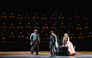 webthea.com Fidelio de BeethovenRomantisme et classicisme font bon ménage Baden Baden-Festival de Pentecôte Par Caroline Alexander L’élégante station thermale de Baden Baden a fêté la première décennie du Festspielhaus, berceau de ces festivals qui offrent tout au long de l’année une centaine de concerts et de représentations d’opéra à son public. Avec ses 2500 places, l’ancienne gare de style art déco abrite donc depuis avril 1998 l’une des plus grandes salles de spectacle d’Allemagne tout en conservant à sa façade et à ses halls le charme de ses anciennes infrastructures ferroviaires. Ici, pas de subventions publiques, seul le mécénat et la billetterie assurent le fonctionnement de l’entreprise musicale qui attire quelques 200.000 spectateurs par saison, soit un taux de fréquentation atteignant les 85%. Les rendez-vous de Pentecôte ont rassemblé, entre autres têtes d’affiche, le Münchner Philharmoniker/Orchestre Philharmonique de Munich sous la direction de Christian Thielemann pour la symphonie n°4 de Bruckner, dite la Romantique, et le Mahler Chamber Orchestra pour un Fidelio de Beethoven tour à tour dirigé par Claudio Abbado et Eivind Gullberg Jensen. Des tons contrastés d’aquarelle et d’eau forte D’un romantisme et d’un orchestre à l’autre, les différences de style et d’approche ont pu se mesurer en termes de couleur et de précision. Si les quatre mouvements du Bruckner furent enlevés avec la netteté d’une gravure au burin par le Berlinois Christian Thielemann – les cors et les bois s’y taillant, comme il se doit, la part du lion – l’unique opéra de Beethoven s’enveloppait de tons contrastés, tantôt d’aquarelle, tantôt d’eau forte, douceur des cordes, mordant des cuivres, transparences quasi chambristes… Une sorte de perfection. A 75 ans, avec quelques problèmes de santé, le maestro Claudio Abbado assura la direction des premières représentations de cette production déjà présentée en Italie et en Espagne, laissant à son assistant le soin de mener à bon port la moitié des engagements. Ce dont le jeune norvégien Eivind Gullberg Jensen s’acquitta brillamment laissant les instrumentistes suspendre en apnée le temps des quatuors, allumer les braises des crescendo martiaux, conservant à l’ensemble le secret des détails les plus intimes. Découvert à Paris où il remplaça impromptu Kurt Masur à la tête de l’Orchestre National de France, un succès qui lui valut une sorte de mise sur orbite, Jensen est en passe de devenir l’une des valeurs sûres du ciel musical international. Chaque détail de la scénographie trouve sa justification Robert Carsen devait signer la mise en scène mais à la suite de désaccords, il fut remplacé par un nouveau venu dans le royaume du lyrique, le réalisateur de cinéma allemand Chris Kraus dont le film " Quatre Minutes " a récemment assuré la renommée. Un bon choix. Se souvenant que Fidelio est né d’un fait divers ayant eu lieu pendant la Révolution Française, Kraus déplace l’action d’Espagne en France et en garde la portée par le symbole omniprésent d’une guillotine. Chaque détail de la scénographie de Maurizio Balo trouve sa justification : un rideau éclaboussé de gouttes de lave à la Jackson Pollock, des lumières tracées au laser, des ombres chinoises et des nocturnes en noir et blanc, l’univers carcéral des prisonniers politiques privés de visages, des escaliers en vertige de ferraille qui dégringolent vers les geôles souterraines où croupit Florestan… Un étrange retournement du happy end final Une idée force, inédite émerge, celle d’un Don Pizzaro qui se déplace tantôt assis en chaise roulante, tantôt debout clopinant sur de menaçantes béquilles. Cette astuce permet un étrange retournement du happy end final quand la vaillante Léonore réussit à délivrer son époux bien aimé et que la foule en liesse acclame le ministre libérateur : les vainqueurs prennent aussitôt la place du vaincu et l’armée repousse brutalement le peuple, tandis qu’à l’horizon se détachent les ombres de quatre nouvelles guillotines… Pour Kraus, l’amour et la liberté, thèmes majeurs de Fidelio qui chante à la fois l’amour conjugal et la liberté, mènerait inévitablement à la mort de la liberté. Une dictature chassant l’autre, un cycle qui se refermerait sur lui-même… Sa vision du monde n’inspire guère l’optimisme. Si le plateau ne réunit pas les gosiers idéaux pour des chants redoutables – le rôle de Léonore est l’un des plus difficiles de tout le répertoire lyrique -, l’ensemble se laisse voir et écouter avec plaisir. Gabriele Fontana qui succède à Anja Kampe dans le rôle titre, n’en a ni exactement les aigus ni tout à fait la rondeur cuivrée mais sa projection est franche et son jeu engagé. On y croit. Le Florestan de Clifton Forbis manque de souffle ce qui, tout compte fait, s’accorde avec le personnage censé épuisé au terme d’années d’enfermement. Albert Dohmen campe un Pizzaro aux graves aboyeurs, et la soprano Julia Kleiter apporte à l’infortunée Marcelline la grâce d’un timbre ensoleillé. L’excellence des chœurs enfin achève la réussite de la production. Fidelio de Ludwig van Beethoven, Mahler Chamber Orchestra, direction Eivind Gullberg Jensen, mise en scène Chris Kraus, scénographie Maurizio Balo, costumes Maria Heinrich, lumières Gigi Saccomandi, direction des chœurs Erwin Ortner. Avec Gabriele Fontana, Albert Dohmen, Clifton Forbis, Giorgio Surian, Julia Kleiter, Jörg Schneider, Ilker Arcayürek, Levente Pall. Arnold Schönberg Chor et Coro de la Comunidad de Madrid. Baden Baden – Festspielhaus – 3, 5, 8 & 10 mai 2008 |