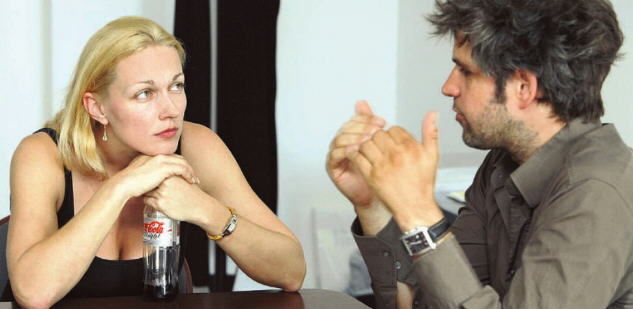 Christoph Schlingensief hat vor drei Jahren in Bayreuth den "Parsifal" inszeniert, damals eine sehr umstrittene Aufführung. Am Tag vor unserem Gespräch war Schlingensief in der Hauptprobe der "Meistersinger". Deswegen unterhalten sich die beiden Regiekollegen bereits vor der Premiere über diese Aufführung. Bei Schlingensiefs "Parsifal" war Katharina Wagner Regieassistentin. So ist es nicht erstaunlich, dass auch diese Aufführung in ihrem Gespräch eine wichtige Rolle spielt. Unser Fotograf |