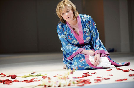 Es muss nicht immer Wagners „Parsifal" sein. Auch Benjamin Brittens Kammeroper „The Rape of Lucretia" taugt mit ihrer Parallele zwischen dem Martyrium einer unbescholtenen Ehefrau aus dem heidnischen Rom um 510 vor Christus und Christi Opfertod als Osteraufführung. Da sich aber das christliche Erlösungsdenken heute kaum noch vermitteln lässt, ist die von zwei Erzählern – dem Male und Female Chorus – getragene christologische Überhöhung schwer zu inszenieren. Der Bariton Dale Duesing, der sich an der Frankfurter Oper bei seinem Regiedebüt in Rossinis „Viaggio a Reims" im Dezember 2004 sogleich als Regisseur von Rang erwiesen hatte, half sich sinnvoll mit der Erfahrung aus seiner amerikanischen Heimat: der Manipulation fundamentalistischer Evangelisierungsgemeinden durch eifernde Prediger. Während dort die Medienpräsenz der Überredungssteigerung dient, setzte sie Duesing diskret zur zusätzlichen Aufklärung ein. Krieg im privaten und öffentlichen Raum Auf Monitoren und Leinwänden an Boris Kudlickas antikisch klarem Halbrund-Raum mit Vorderbühne im Bockenheimer Depot war umso deutlicher zu verfolgen, wie das fassadenhafte Dauerlächeln des Predigerehepaares allmählich in existenzieller Betroffenheit zusammenbricht und wie Vergewaltigung und Traumatisierung Lucretias schöne Gesichtszüge zerstört. Und die Bildschirm-Silhouette des Gewaltherrschers Tarquinius Superbus erschien noch bedrohlicher als der Eindringling auf der Bühne. Doch in dieser Parabel von Liebe, unschuldig ertragener Schuld und Erlösungshoffnung vermied der Regisseur jeden Anflug von Exhibitionismus. Stattdessen setzte Duesing, der als junger Sänger den Tarquinius noch unter Brittens Leitung verkörpert hatte, mit minutiöser, erhellender Personenführung auf die Verstörungen, die ein Krieg im privaten wie öffentlichen Raum anrichtet. Denn Lucretias Vergewaltigung ist ja auch Teil der Gewaltherrschaft über Rom, mit der Britten, der Pazifist, 1946 auf die Opfer nicht allein des Zweiten Weltkriegs verweist. In jeder Geste, Bewegung und Mimik ließ sich nachvollziehen, wie Tarquinius’ sexuelle Eroberungsgier eine Haus- und Lebensgemeinschaft zerstört – als Pars pro Toto einer ganzen Nation. Solchen, ohne jede Äußerlichkeit mitbedachten und mitinszenierten Hintergründen, aber auch dem psychologischen Tiefenblick des Menschenkenners Duesing verdankte die Premiere ihren dramatischen Sog und ihre Aktualität, die sich auch in Nicky Shaws Kostümen niederschlug. Gleichwertigen Anteil am Erfolg hatten das von Maurizio Barbacini dirigierte Instrumentalensemble an der linken Flanke der Vorderbühne und ein ausgezeichnetes Sängerteam vorwiegend aus dem Frankfurter Opernensemble. Kaum überbietbar waren die Plastizität und die Farbigkeit, mit denen das Kammerorchester aus Mitgliedern des Frankfurter Museumsorchesters Brittens äußerst dichte, oft klangmalerische, aus zahlreichen musikgeschichtlichen Quellen gespeiste Partitur auslotete. Vertreibung aus dem Paradies Peter Marsh war in der Peter-Pears-Rolle des Male Chorus mit markantem, flexiblem Tenor ein fanatischer Kommentator und Prediger, der seine christlichen Überzeugungen geradezu ins Publikum, seine „Gemeinde", schleuderte. Eine mehrdeutige Glanznummer war seine Pantomime von Tarquinius’ Höllenritt zu Lucretia. Anja Fidelia Ulrich assistierte ihm mit flexiblem Sopran als Female Chorus. Claudia Mahnke bot mit leuchtkräftigem, überaus nuanciertem Mezzo eine packende Charakterstudie der Titelheldin zwischen Eheglück, Verzweiflung und Selbstmord auf blumengeschmückter, von innen leuchtender Treppe – ein lichtumflutetes Inbild der Reinheit trotz Schändung. An Lucretias stimmlich wie darstellerisch anmutigen Gefährtinnen Bianca (Arlene Rolph) und Lucia (Krenare Gashi) war die Vertreibung aus dem Paradies nachzuvollziehen – als Echo auf Lucretias Fall und Sühne, indem sie wie Christus schuldlos ihre vorgebliche Schuld auf sich nimmt. Die soldatischen Kollegen Collatinus und Tarquinius, ergänzt von Andrew Ashwins frischbaritonalem Junius, legte Duesing als Kontrasttypen an: Lucretias Ehemann als einen menschlich integren Friedensstifter beim Streit der Soldaten im ersten Bild des ersten Akts und als wahrhaft Liebenden, deshalb Verzeihenden im vierten und letzten Bild, wozu Simon Baileys runder, klangschöner Bariton exakt passte; den Eroberer als rücksichtslosen Heißsporn mit Nathaniel Websters entsprechend metallischerem Bariton, der aber auch über die Schmeicheltöne des Verführers verfügt. Insgesamt erwies sich diese überzeugende Neuinszenierung als wertvoller Baustein im Frankfurter Britten-Zyklus. ELLEN KOHLHAAS |