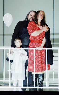 FINANCIAL TIMES Frankfurt Opera By Shirley Apthorp The dead are among us. White-clad, entranced, they wander through our lives, observing, unobserved. They are the common thread in Puccini’s Il trittico, as Claus Guth sees it. In his new production for the Frankfurt Opera, Guth digs deep and strikes gold. Superficially unrelated, Puccini’s three one-act tales do indeed all deal with death, and all play out in claustrophobically closed settings. Guth extrapolates these similarities, placing all his characters – living and dead – together in the airless confines of a low-budget cruise-ship (sets by Christian Schmidt). Of course, this works best for the water-based Il tabarro. Why would all those nuns be living out their lives afloat, or Buoso’s entire family be waiting for him to croak so far from land? But Guth draws his connections with a sure hand, letting his nuns buy the minstrel’s song in Il tabarro and sending his ghosts to haunt the neighbouring operas. His characters are minutely observed and passionately played, his details poignant and plausible. It is the death of Michele and Giorgetta’s child that drives the couple apart, and Guth lets us see the boy, dreamily steering a paper boat, gazing reflectively into the distance. He runs a hand over his father’s arm. A heartbeat later Michele shivers, frowns, and touches the place where his son’s hand has been. The evening is full of such simple but devastatingly effective gestures. We see how Giorgetta’s aching sense of physical loss drives her into Luigi’s arms, and how Michele’s brooding anger finally explodes into fatal violence. Guth twists our emotions without ever lapsing into kitsch or overstatement. This sense of balance is crucially shared by the conductor Nicola Luisotti, who can paint ravishingly sensual and yearning aural landscapes but constantly tugs his disciplined forces back from the brink of emotional excess. The final ace up the Frankfurt Opera’s sleeve is its first-rate casting, an exemplary mix of house stalwarts and astonishing surprises. Into the latter category falls South African Elza van den Heever, giving her German debut as Giorgetta. It is a performance of remarkable emotional conviction and technical assurance, with a freshness and originality that lesser houses might only dream of finding. Also formidable are Zeljko Lucic’s damaged, dangerous Michele, Carlo Ventre’s unfettered, all-or-nothing Luigi and Julia Juon’s magnificently quirky Frugola. Juon is back again in Suor Angelica, this time as the title nun’s sadistically buttoned-up aunt, oozing repressive moral certainty. Again, Guth tells the story as it is, lending a hint of cultish obsession to the rituals of on-board cloister life, giving Angelica a laboratory in lieu of her garden, and sending her dead son to tend her plants and visit her dreams. Angelina Ruzzafante, a last-minute ring-in for the indisposed Danielle Halbwachs, gives a scorchingly honest account of the title role, strongly supported by her fellow initiates. So convincing was Lucic as the murderous Michele that one balks a little to see him back as Gianni Schicchi. Guth brings out the macabre cruelty of the avaricious family by sending Buoso’s ghost to drift among them, vulnerable, unjudgmental, in stark contrast to their grasping ambition. And he takes Schicchi’s parting reference to Dante’s Inferno to its logical conclusion, sending the hero to join the deceased via an offstage gunshot in the final bars. The ambiguity of Lucic’s return thus becomes a deliberate ploy, and the singer revels in the dark overtones of his role. For all its bleak conclusion, this is a Gianni Schicchi that draws plenty of laughter and flies on the edge of perfect comic timing. The ensemble work, both musical and dramatic, is tight and clever, the cast well- matched and wonderfully assured. In all, this is an evening to recommend. |