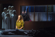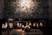 Köln, Staatenhaus [Saal 1]domenica 14 febbraio 2016 Walther Braunfels Jeanne d'Arc Szenen aus dem Leben der Heiligen Johanna Poema di Walther Braunfels dalle carte processuali del 1431 Gürzenich-Orchester Köln Chor und Extra Chor der Oper Köln Mädchen und Knaben des Kölner Domchores Lothar Zagrosek (dir.), Andrew Ollivant (c.) Tatjana Gürbaca (reg.), Stefan Heyne (sc.), Silke Willrett (cost.), Andreas Grüter (l.) int.: Juliane Banse/Tatjana Gürbaca (Johanna), Ferdinand von Bothmer (Hl. Michael), Justyna Samborska (Hl. Katharina), Judith Thielsen (Hl. Margarete), Matthias Klink (Karl von Valois, König von Frankreich), Luke Stoker (Erzbischof von Reims), Martin Koch (Cauchon, Bischof von Beauvais), Dennis Wilgenhof (Vicar Inquisitor), Dennis Wilgenhof (Jacobus von Arc, Johannas Vater), Ralf Rachbauer (Colin, ein Echäfer), Oliver Zwarg (Gilles de Rais, Genannt "Blaubart"), Bjarni Thor Kristinsson (Herzog de la Trémouille), John Heuzenroeder (Herzog von Alençon), Christian Miedl (Ritter Baudricourt), Adriana Bastidas Gamboa (Lison, seine Frau), Alexander Fedin (Bertrand de Poulengy), Luke Stoker (Florent d'Illiers), Dongmin Lee (Page), George Ziwziwadze (Englischer Hauptmann). |