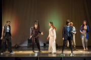 Venezia, Teatro Malibran domenica 7 febbraio 2016 Louis-Auguste-Florimond Ronger (Hervé) Les chevaliers de la Table ronde [I cavalieri della tavola rotonda] Opéra-bouffe in tre atti libretto di Henri Chivot e Alfred Duru trascrizione per tredici cantanti e dodici strumentisti di Thibault Perrine Compagnie Les Brigands Christophe Grapperon (dir.), Nicolas Ducloux e Christophe Manien (c.) Pierre-André Weitz (reg., sc. e cost.), Bertrand Killy (l.) int.: Damien Bigourdan (Il duca Rodomonte), Antoine Philippot (Sacripante, siniscalco), Arnaud Marzorati (Merlino, mago e maestro di scuola), Mathias Vidal (Medoro, giovane menestrello), Ingrid Perruche (La duchessa Totoche, moglie di Rodomonte), Lara Neumann (Angelica, figlia di Rodomonte), Chantal Santon Jeffery (Melusina, maga), Clémentine Bourgoin (Fleur-de-Neige, dama d’onore), Rémy Mathieu (Orlando, cavaliere errante), David Ghilardi (Amadigi di Gaula, cavaliere), Théophile Alexandre (Lancillotto del Lago, cavaliere), Jérémie Delvert (Rinaldo di Montalbano, cavaliere), Pierre Lebon (Ogier il danese, cavaliere). |