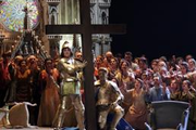 Lyon, Opéra venerdì 25 marzo 2016 Jacques Fromental Halévy La juive Grand-opéra in cinque atti di Eugène Scribe Orchestre et Chœurs de l'Opéra de Lyon Daniele Rustioni (dir.), Philip White (c.) Olivier Py (reg.), Pierre-André Weitz (sc. e cost.), Bertrand Killy (l.) int.: Nikolai Schukoff (Éléazar), Rachel Harnisch (Rachel), Roberto Scandiuzzi (Jean-François de Brogni), Enea Scala (Léopold), Sabina Puértolas (Eudoxie), Vincent Le Texier (Ruggiero), Charles Rice (Albert), Brian Bruce (Un officier), Alain Sobieski (Bourreau), Dominique Beneforti, Charles Saillofest (Hommes du peuple). |