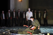 Basel, Theater [Großes Haus]venerdì 15 aprile 2016 Giuseppe Verdi Macbeth Opera in quattro atti di Francesco Maria Piave dalla tragedia omonima di William Shakespeare Sinfonieorchester Basel Chor des Theater Basel Erik Nielsen (dir.), Henryk Polus (c.) Olivier Py (reg.), Pierre-André Weitz (sc. e cost.), Bertarnd Killy l.) int.: Vladislav Sulimsky (Macbeth), Callum Thorpe (Banquo), Katia Pellegrino (Lady Macbeth), Valentina Marghinotti (Dama di Lady Macbeth), Demos Flemotomos (Macduff), Markus Nykänen (Malcom), Andrew Murphy (Un medico), Vivian Zatta (Un servo di Macbeth/Il sicario), Vladimir Vassilev (Prima apparizione), Noah Gysin (Seconda apparizione), Victor Fernandez-Garcia (Terza apparizione), Martin Krämer (L’araldo). |