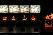 Venezia, Teatro alle Tese sabato 10 ottobre 2015 Georges Aperghis Machinations per 4 voci femminili e computer (2000) testi di François Regnault e Georges Aperghis Georges Aperghis (reg.), Daniel Levy (l. e video) Olivier Pasquet (informatica musicale) int.: Sylvie Levesque, Donatienne Michel-Dansac, Sylkvie Sacoun, Geneviève Strosser (voci). | |