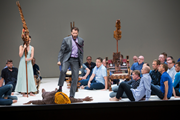 Karlsruhe, Badisches Staatstheater [Grosses Haus]venerdì 15 gennaio 2016 Giacomo Meyerbeer Le prophète Grand opéra in cinque atti libretto di Eugène Scribe und Émile Deschamps Badische Staatskapelle Badischer Staatsopernchor und Extrachor Cantus Juvenum Karlsruhe e. V. TruCru/Incredible Syndicate Johannes Willig (dir.), Ulrich Wagner e Anette Schneider (c.) Tobias Kratzer (reg.), Rainer Sellmaier (sc. e cost.), Stefan Woinke (l.), Manuel Braun (video) int.: Marc Heller (Jean de Leyden), Ewa Wolak / Giovanna Lanza (Fidès), Ina Schlingensiepen / Agnieszka Tomaszewska (Berthe), Avtandil Kaspeli / Luiz Molz (Zacharias), James Edgar Knight / Matthias Wohlbrecht (Jonas), Lucia Lucas / Renatus Meszar (Mathisen), Andrew Finden / Armin Kolarczyk (Le comte d'Oberthal), Mehmet Altiparmak (Un anabattista/Un ufficiale), Maike Etzold / Dagmar Landmann (Prima contadina), Ursula Hamm-Keller / Cecilia Tempesta (Seconda contadina), Jin-Soo Kim / Jan Heinrich Kuschel (Primo contadino), Marcelo Angulo / Lukasz Ziolkiewicz (Secondo contadino), Doru Cepreaga / Marian Szkwarkowski (Primo anabattista), Alexander Huck / Dmitrijus Polesciukas (Secondo anabattista), Johannes Eidloth / Sae-Jin Oh (Primo borghese), Peter Herrmann / Thomas Krause (Secondo borghese), Wolfram Krohn / Thomas Rebilas (Terzo borghese), Alexander Huck / Markku Tervo (Quarto borghese), Andreas von Rüden / Arno Deparade (Primo ufficiale), Cantus Juvenum Karlsruhe (Due bambini), Levent Gürsoy, Mohamad Khamis, Faton Kurtishaj, Michael Massa, Trung Dung Nguyen, Hakan Özer (danzatori). |