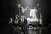 Zürich, Opernhaus [Hauptbühne]domenica 18 ottobre 2015 Vincenzo Bellini Norma Tragedia lirica in due atti libretto di Felice Romani dalla tragedia Norma ou L’infanticide di Alexandre Soumet Orchestra La Scintilla Coro della Radiotelevisione Svizzera Italiana, Lugano Giovanni Antonini (dir.), Gianluca Capuano (c.) Patrice Caurier e Moshe Leiser (reg.), Christian Fenouillat (sc.), Agostino Cavalca (cost.), Christophe Forey (l.) int.: Cecilia Bartoli (Norma), Rebeca Olvera (Adalgisa), John Osborn (Pollione), Péter Kálmán (Oroveso), Liliana Nikiteanu (Clotilda), Reinaldo Macias (Flavio). |